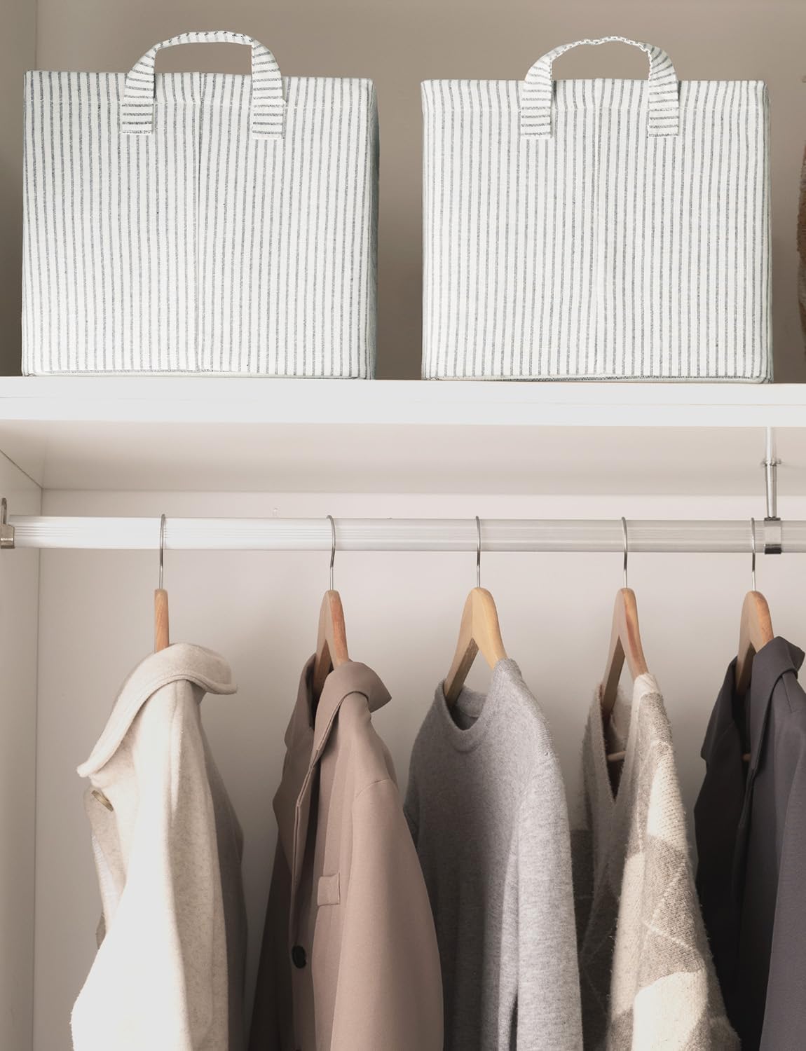 StorageWorks Storage Bins, Fabric Storage Bins for Shelves, Large Storage Baskets with Metal Frame, Closet Baskets and Bins with Handles, Khaki and Beige Stripes, 2-Pack