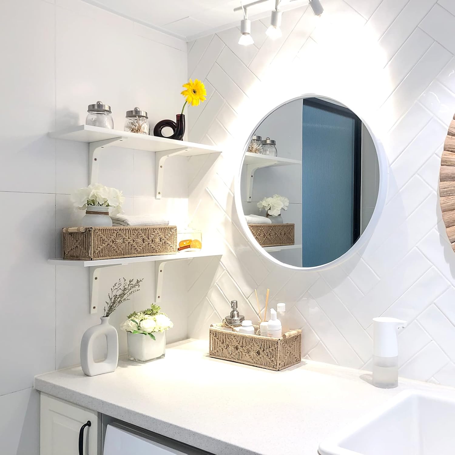 - PERFECT ADDITION TO BATHROOM DECOR. These cute little baskets evoke a warm and classy taste that both works harmoniously and aesthetically. The neutral colors and sleek design means that it will fit perfectly into any home. Use it to decorate, organize and store items, keep the home clean and comfortable. --( It is protected by intellectual property right.)