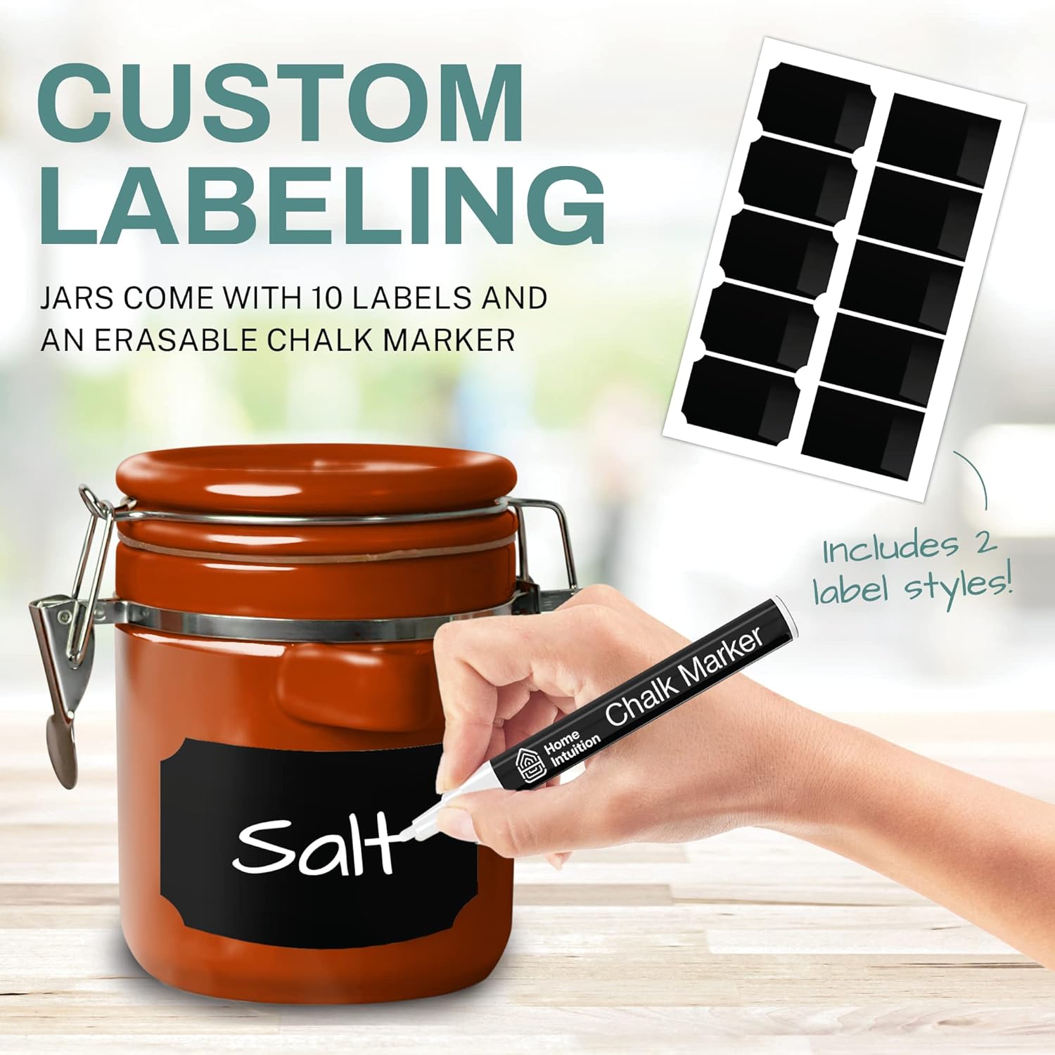 • TIMELESS DURABLE CERAMIC QUALITY: Unlike plastic containers that tend to look cheap and flimsy, these ceramic canisters are sturdy, durable, and super easy to keep clean for years to come and go. And the best part? Their sleek design makes a beautiful addition to the countertop of any modern, rustic, vintage, or house-farm kitchen