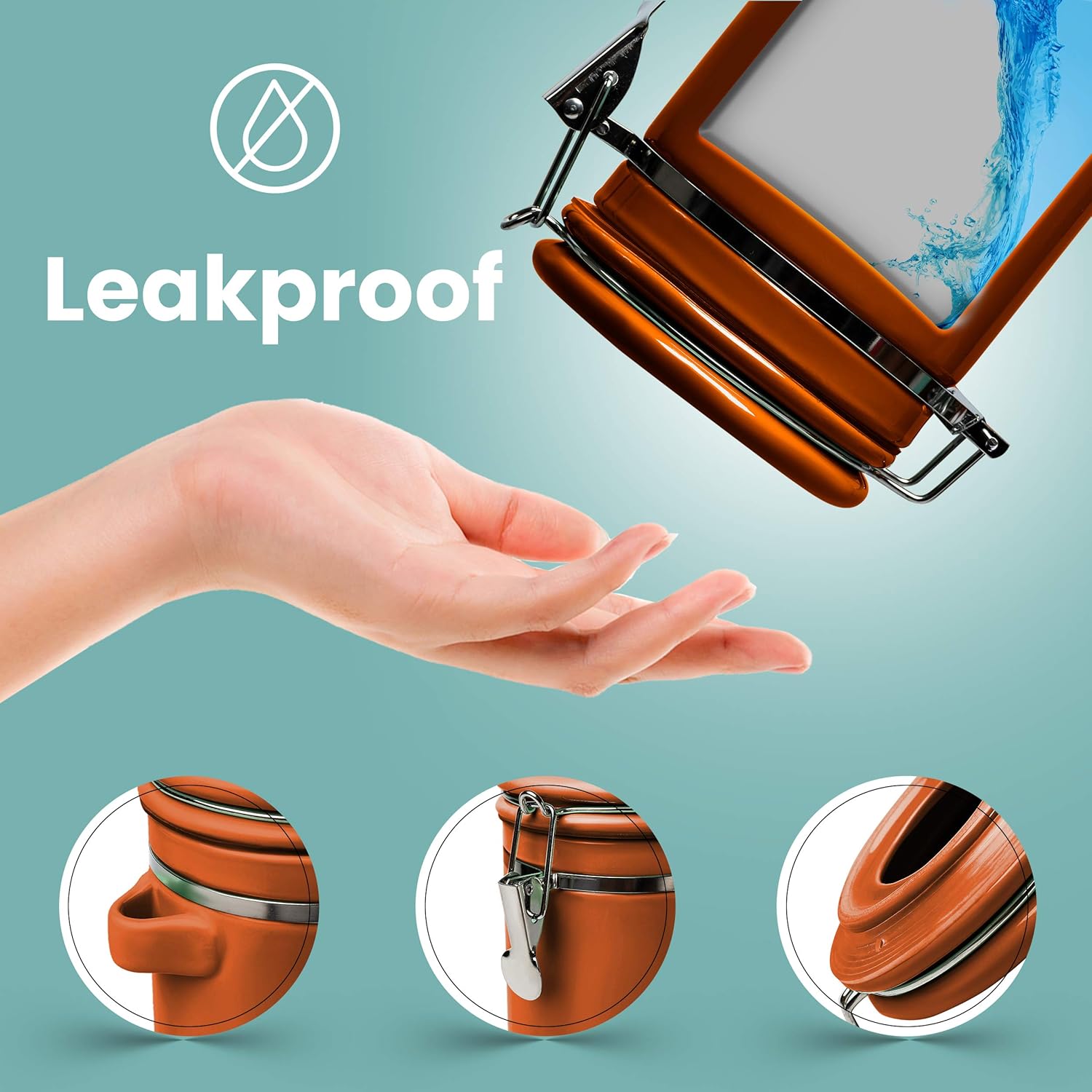 • AIRTIGHT SEAL FOR UNBEATABLE FRESHNESS: Featuring an airtight lid with silicone gaskets and a metal latch for perfect seal, this handy canister set will preserve the flavor of your supplies and keep them fresh and delicious. Perfect for any type of coffee, tea, sugar, flour, salt, candy, spices and so much more. Plus, they are 100% leakproof to prevent any messy spills