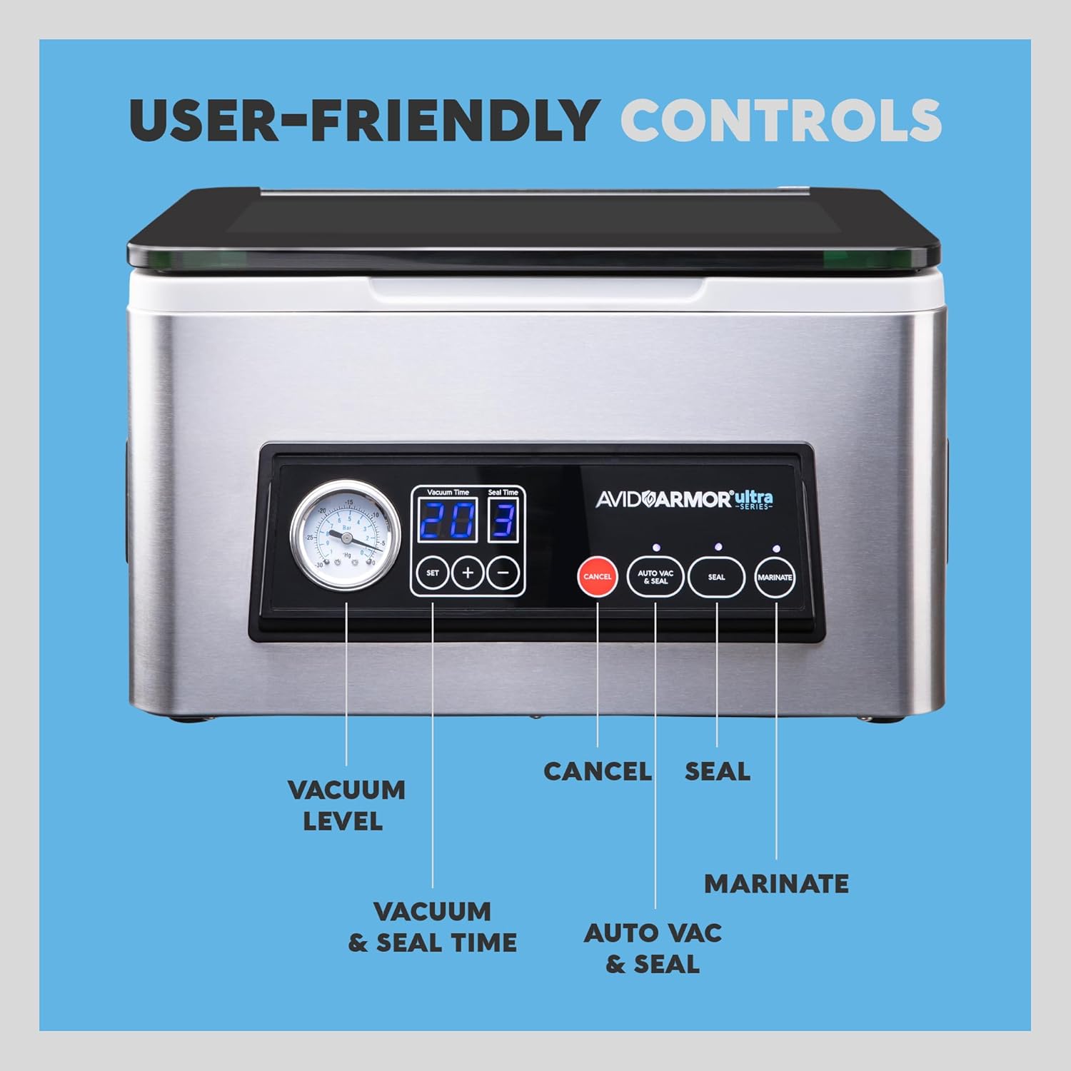 Avid Armor Chamber Vacuum Sealer Machine USV20 Ultra Series for Wet Foods, Meat Vacuum Packing Machine, Compact with 11.5-Inch Vaccum Sealer Bar