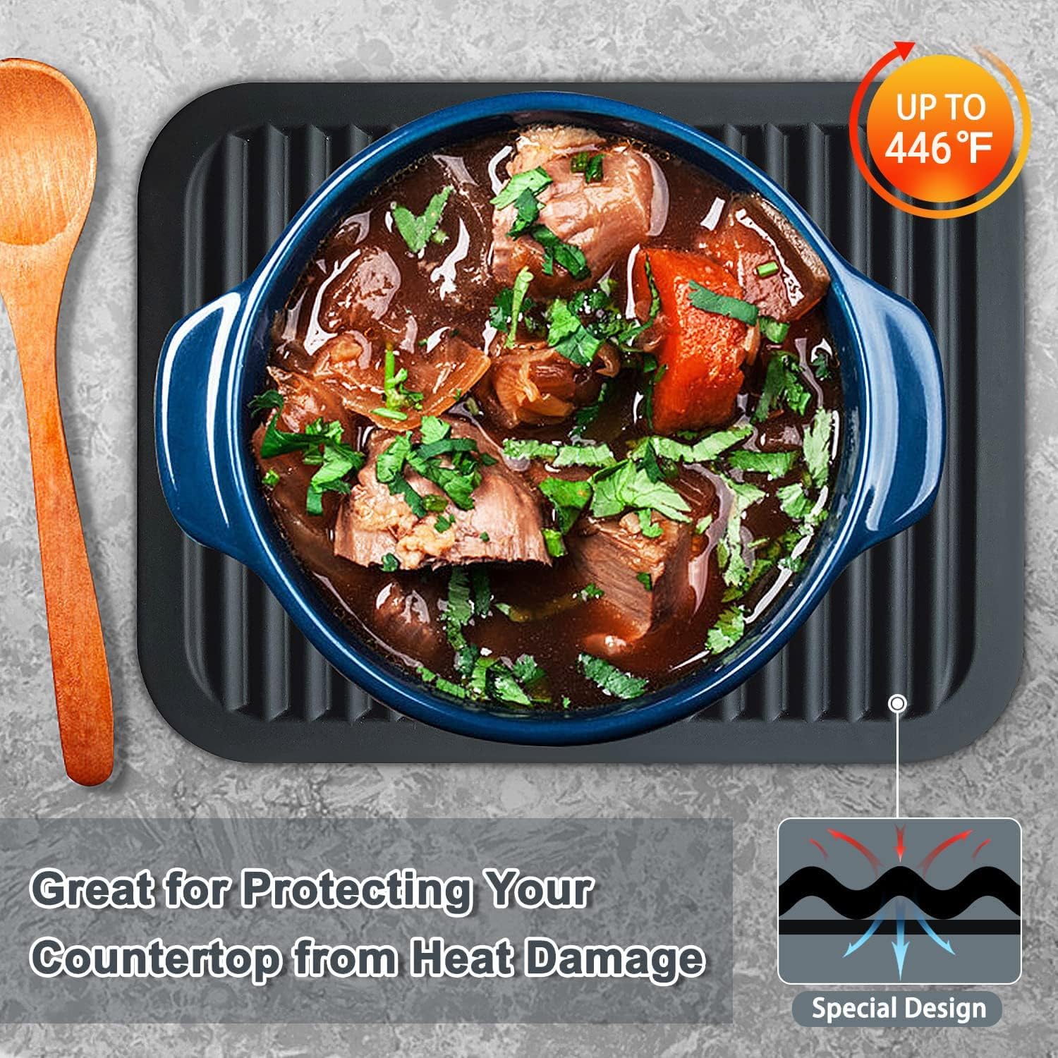 - HEAT RESISTANT UP TO 446Β°F: Walfos Big Silicone Trivets mat heat resistant up to 446Β°F, Raised wide ridges will separates the hot pot from the table, protect your kitchen surfaces from scalding