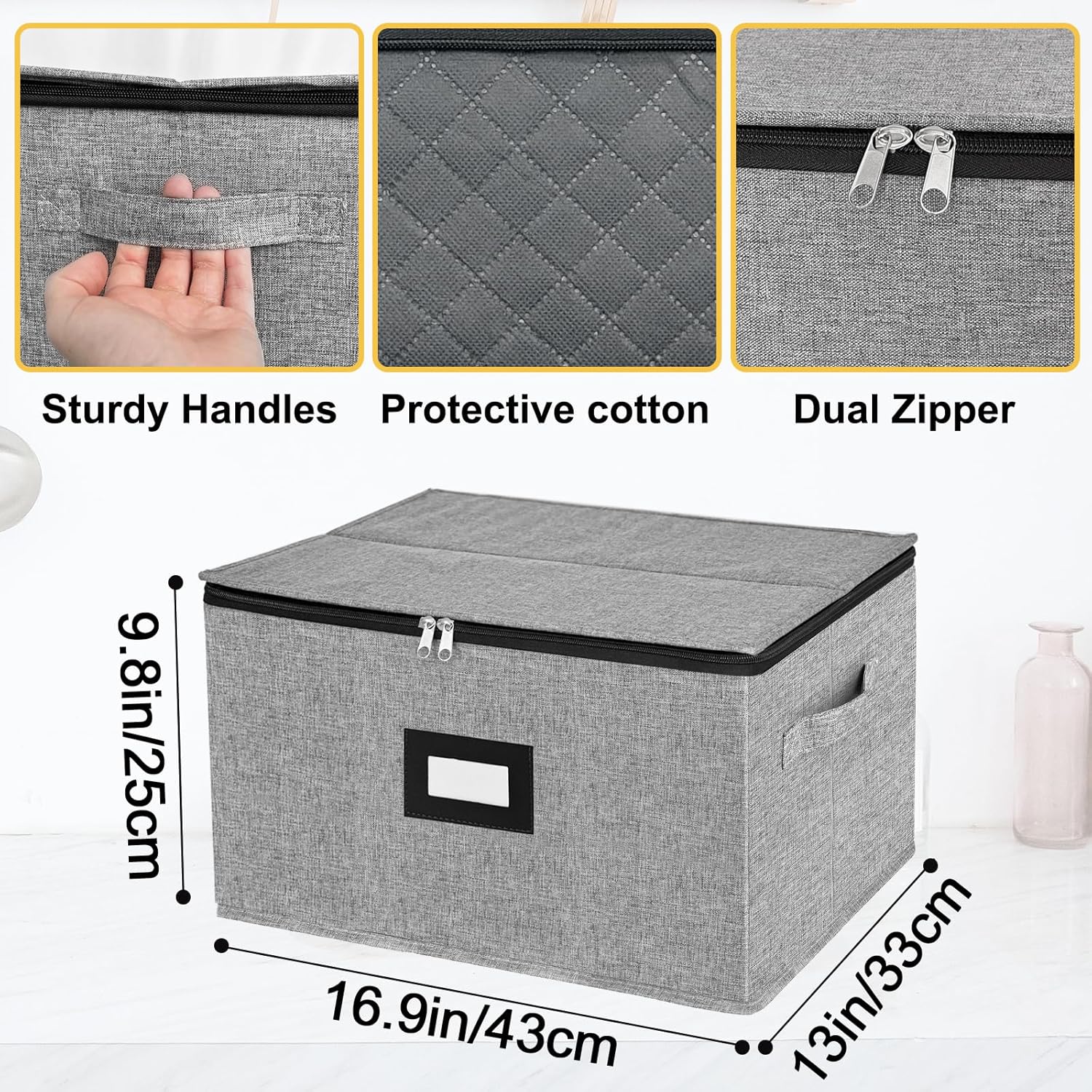 - π· Double top-grade stong zipper - Dinnerware storage organizers equipped with #5 stainless steel zippers which are hard to be broken,top-grade,fasion design,two-way zippers allow it to easily slide along the colsure when in use.