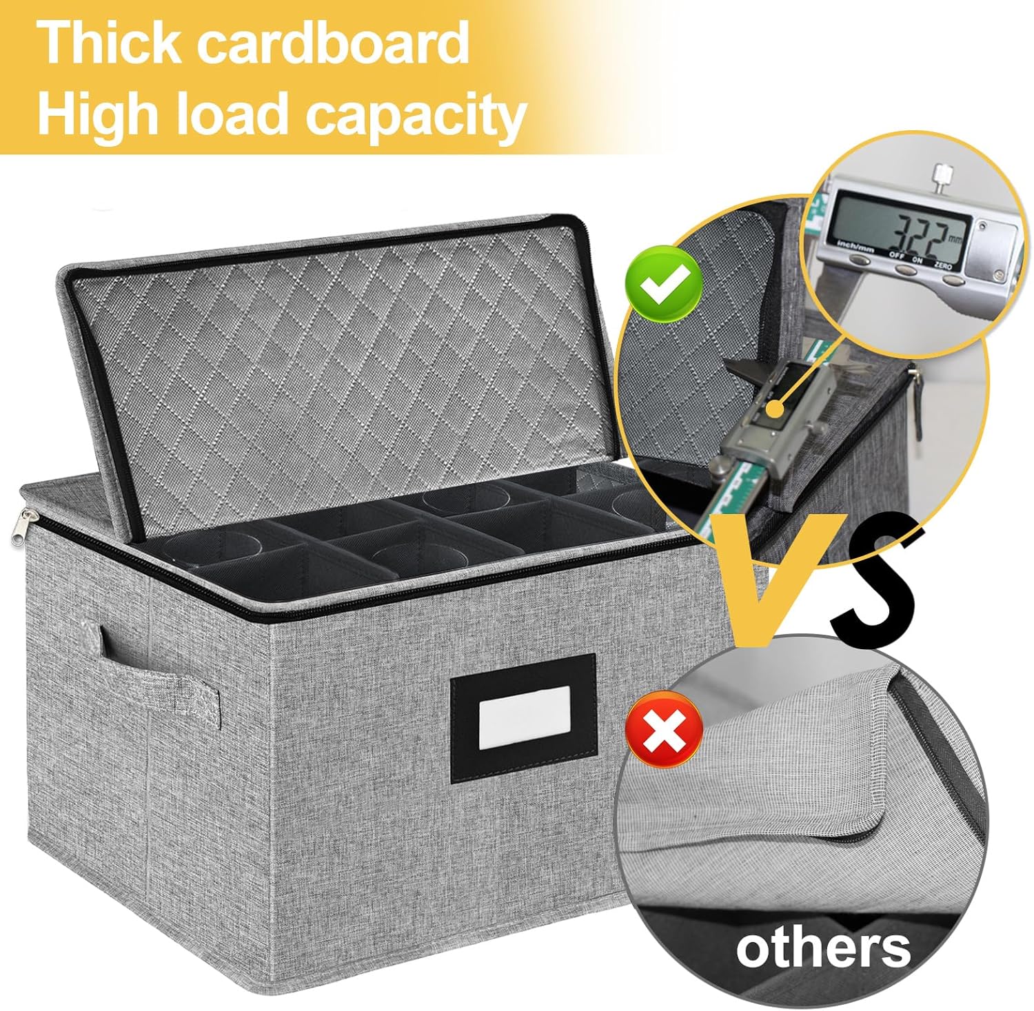 - π· Premium durable material - Stackable wine glasses storage box is made of premium TC fabric and sturdy thick cardboard,the lid made with thick cardboard inside,the side pieces provide additional protection,so it's more sturdy than others.