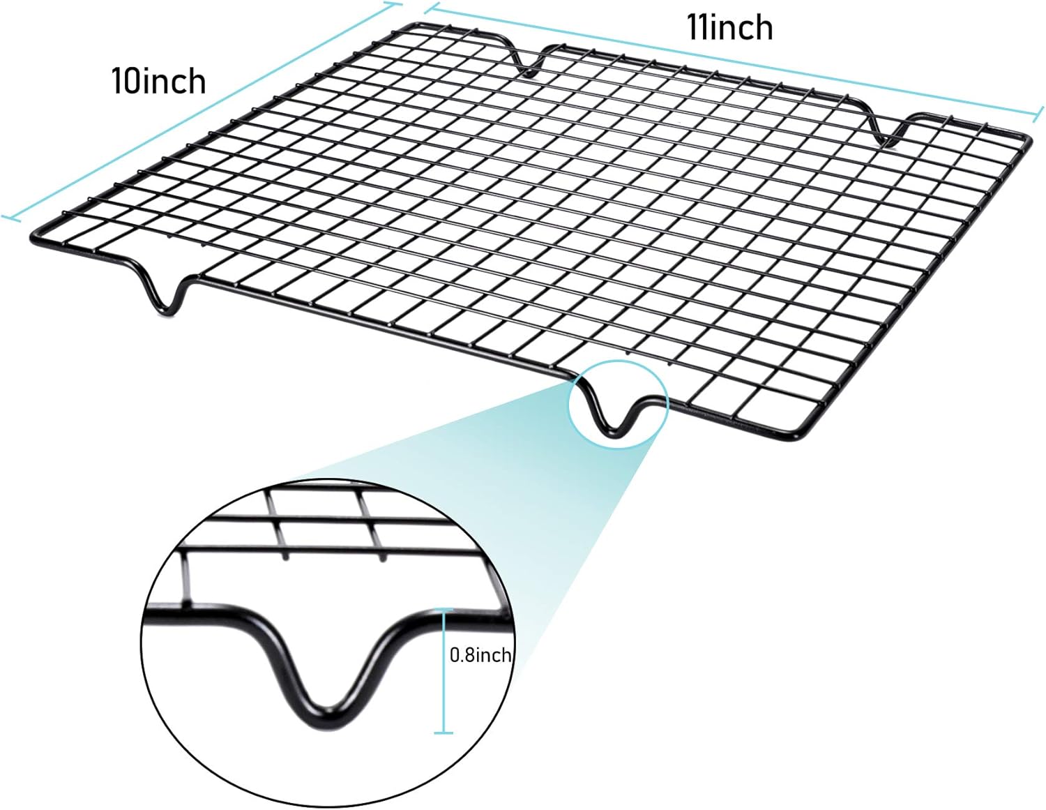 Lamoutor 2Pcs Metal Kitchen Baking Cooling Rack Square Wire Cooling Rack for Cake and Meat 10 x 11 inches (Black)