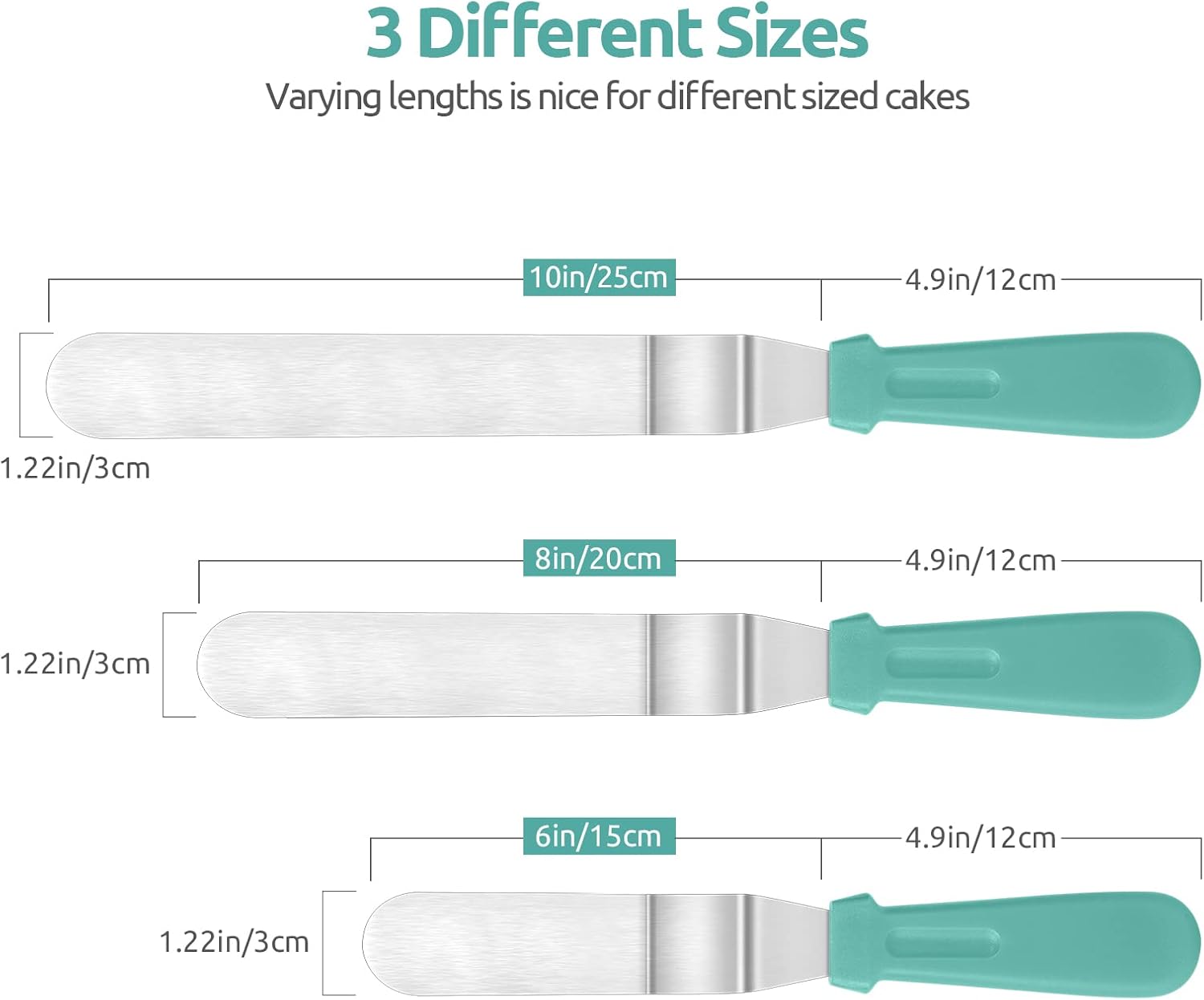 Icing Spatula, U-Taste Offset Spatula Set with 6", 8", 10" Blade, 18/0 Stainless Steel with PP Plastic Handle Angled Cake Decorating Frosting Spatula Set of 3 (Teal/Aqua Sky)