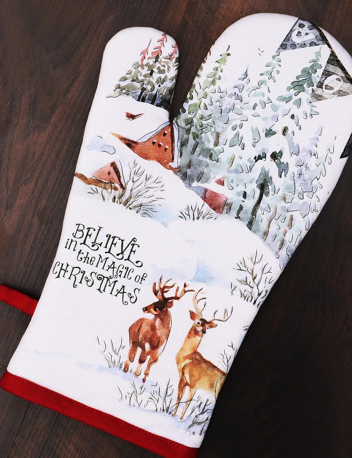 AMOUR INFINI Oven Mitts Set of 1 Quilted Liner with Hanging Loop Non Slip, Heat Resistant, Washable Reusable Oven Mitt Gifts (Christmas Winter 7x13 Inches)