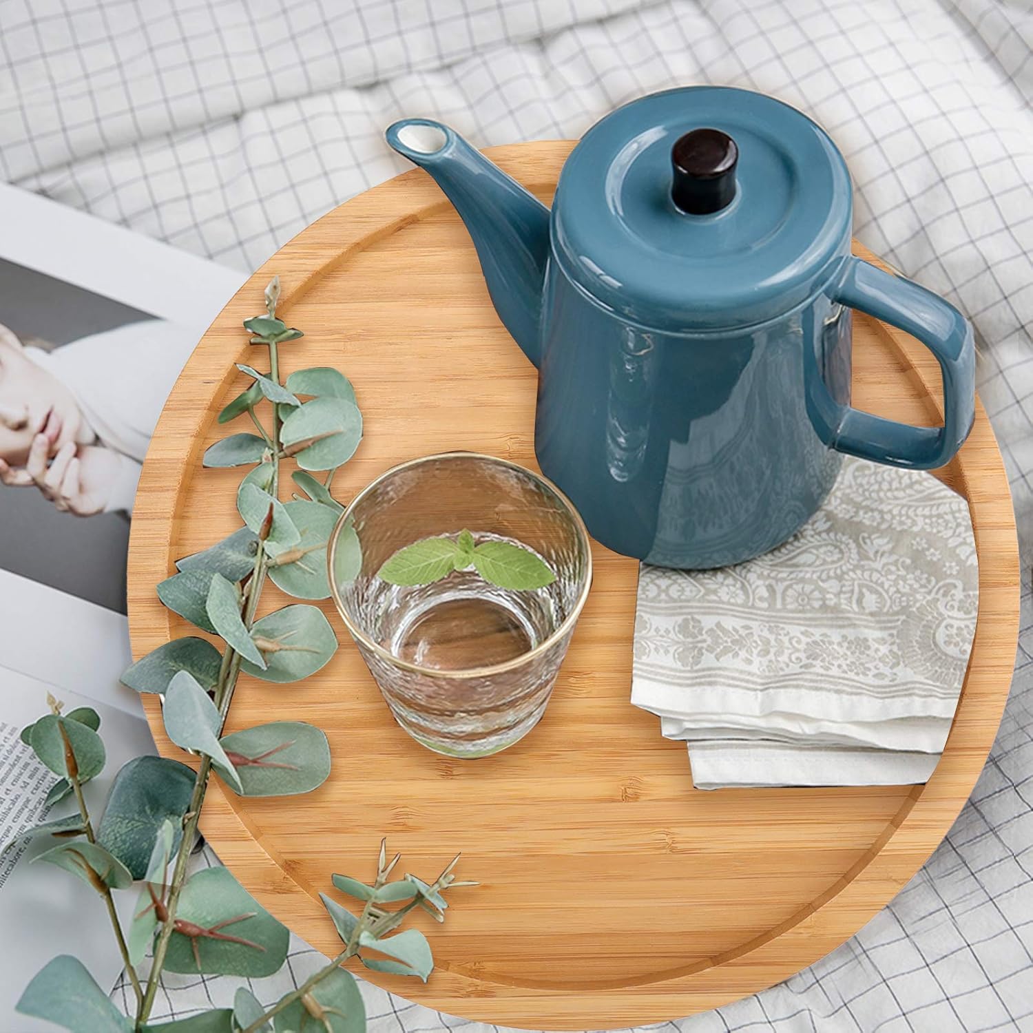 Fasmov 10 Inches Diameter Bamboo Lazy Susan Turntable, Spin Thicken Round Wood Tray Rotating Spice Rack for Kitchen Pantry Countertop Table