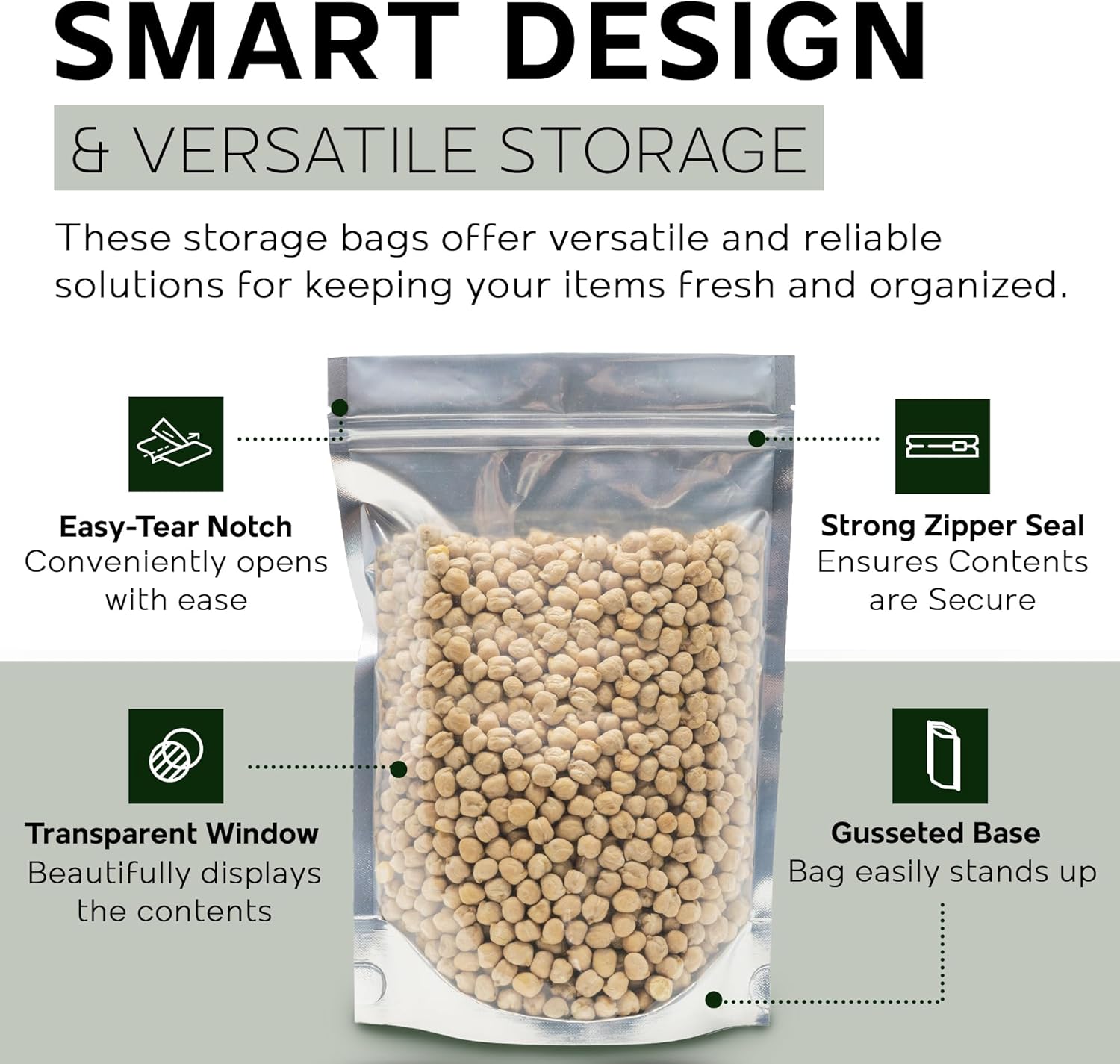 - Easy to Store and Reuse - These heat seal bags have a convenient tear-notch and a handy zipper top for effortless storage. The strong zipper seal allows you to pack and repack contents.