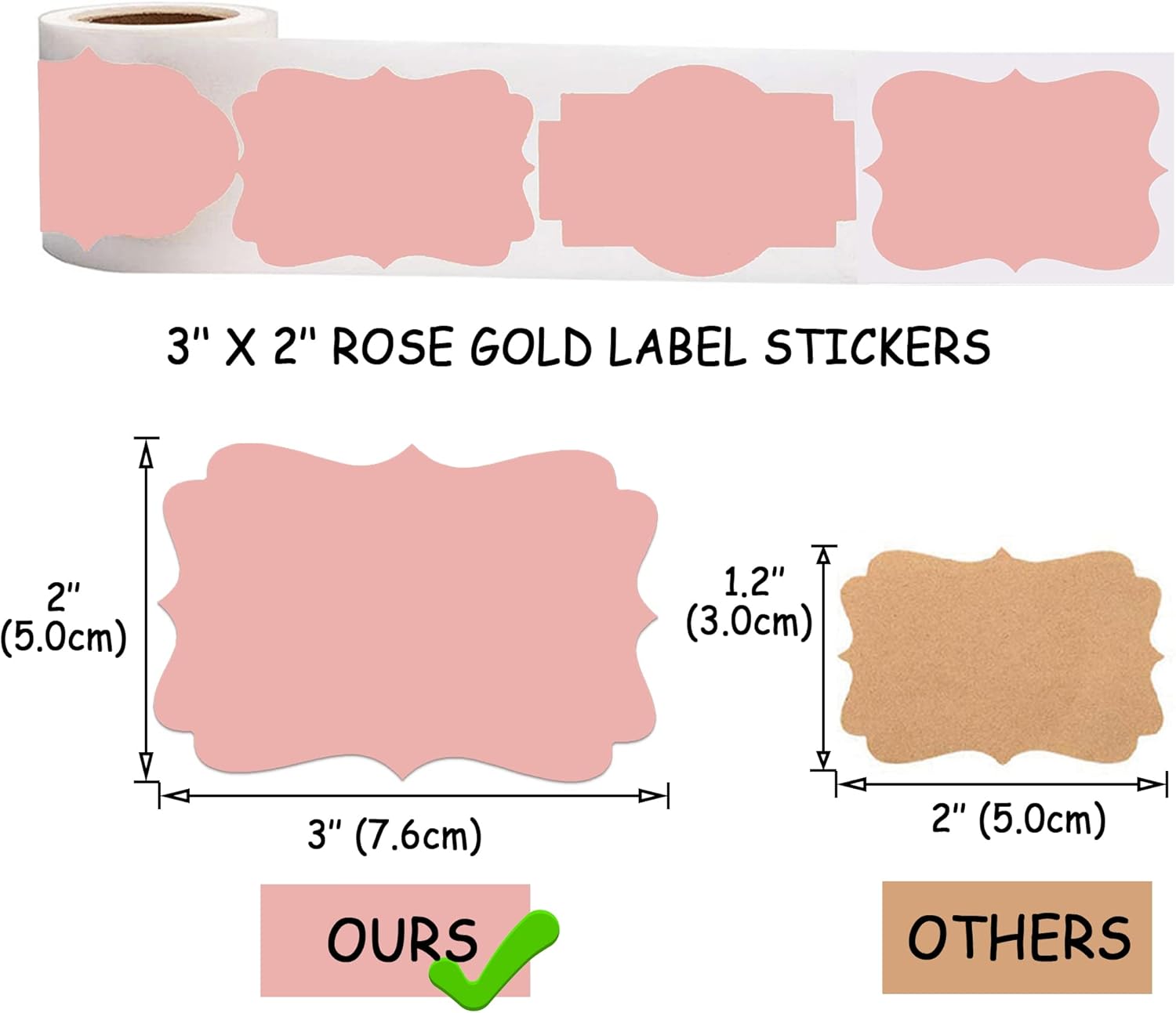 SALEMAR 2 x 3 inch Rose Gold Sticker Labels 200PCS Sticky Tag Stickers for Essential Oil, Bottles, Food, Jars, Canning, Christmas(Rose Gold)