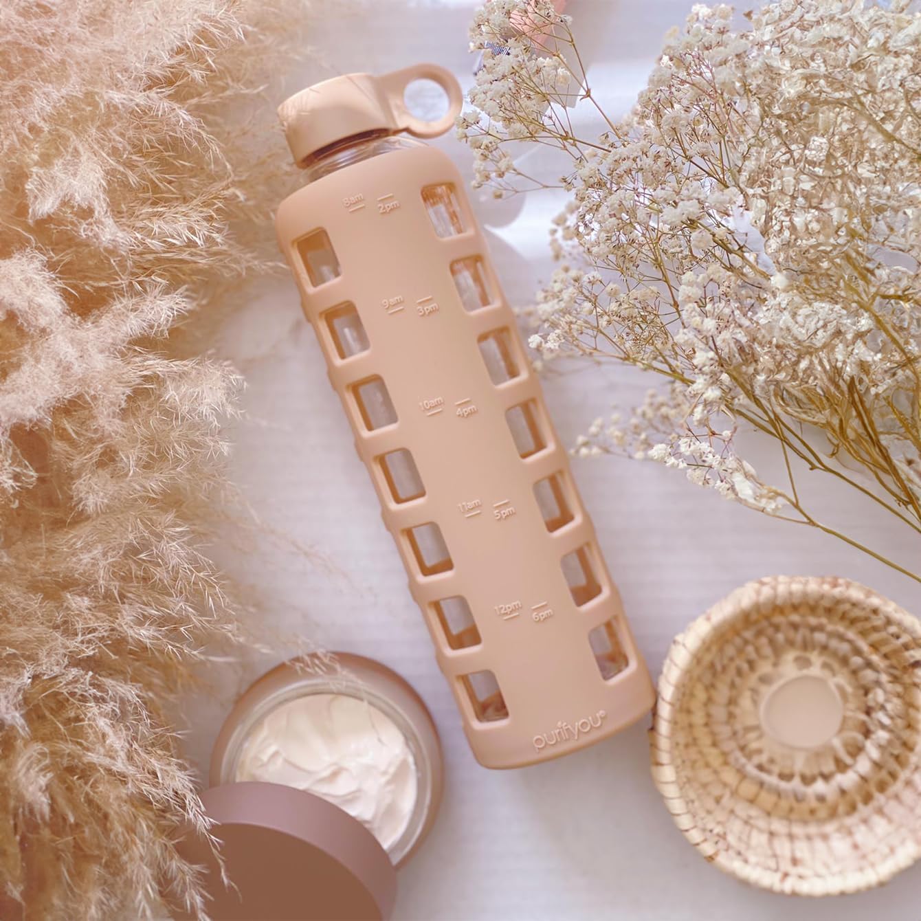 - Stylish protection: Silicone sleeve adds grip and impact resistance with color options; available in multiple sizes including big glass water bottles and 32oz water bottles.
