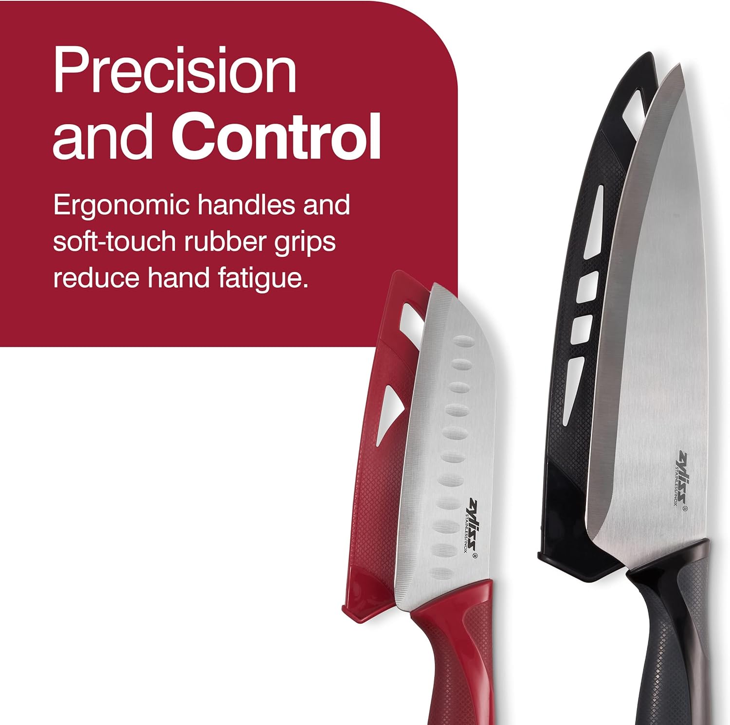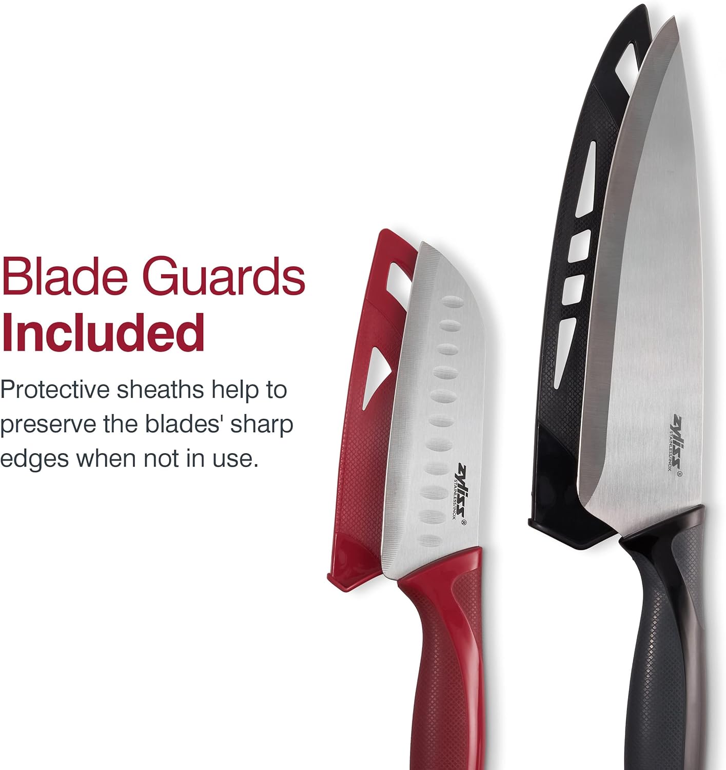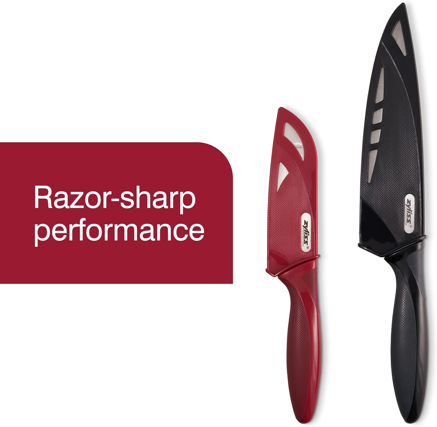 Zyliss Utility Kitchen Knives with Sheath Covers - Dishwasher Safe - Stainless Steel Kitchen Knives Perfect for Cutting Meat, Vegetables & Fruit - 2 Piece Santoku & Chef Set