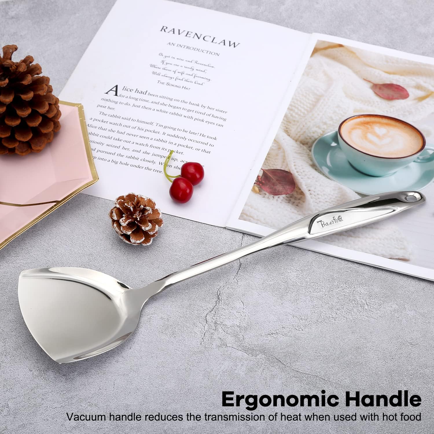 High Grade Spatula,Stainless Steel Turner, Kitchen Work Turner,Wok Spatula,Heat-proof Design of Hollow Handle, No rust, Dishwasher Safe (13.5 Inch)