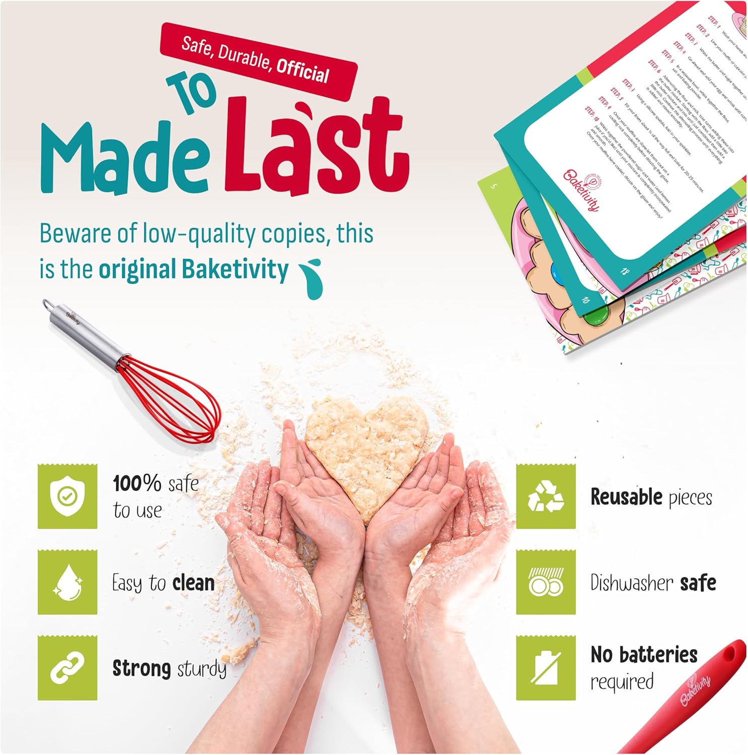 - BUILT TO LAST – Sturdy, reusable utensils that hold up to everyday kitchen use. Dishwasher-safe tools mean easier cleanup for parents and endless baking fun for kids.