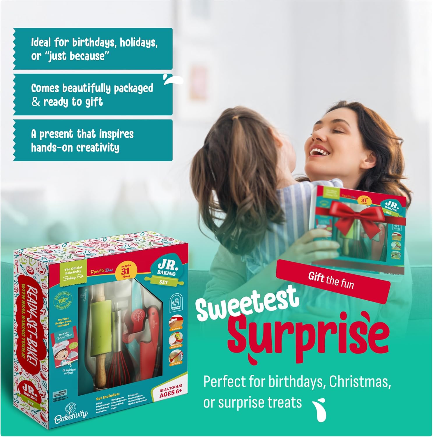 Baketivity 31-Piece Kids Baking Tools Set – Real Cooking Utensils for Children – Safe, Durable, and Fun Kitchen Accessories – Gift for Young Chefs