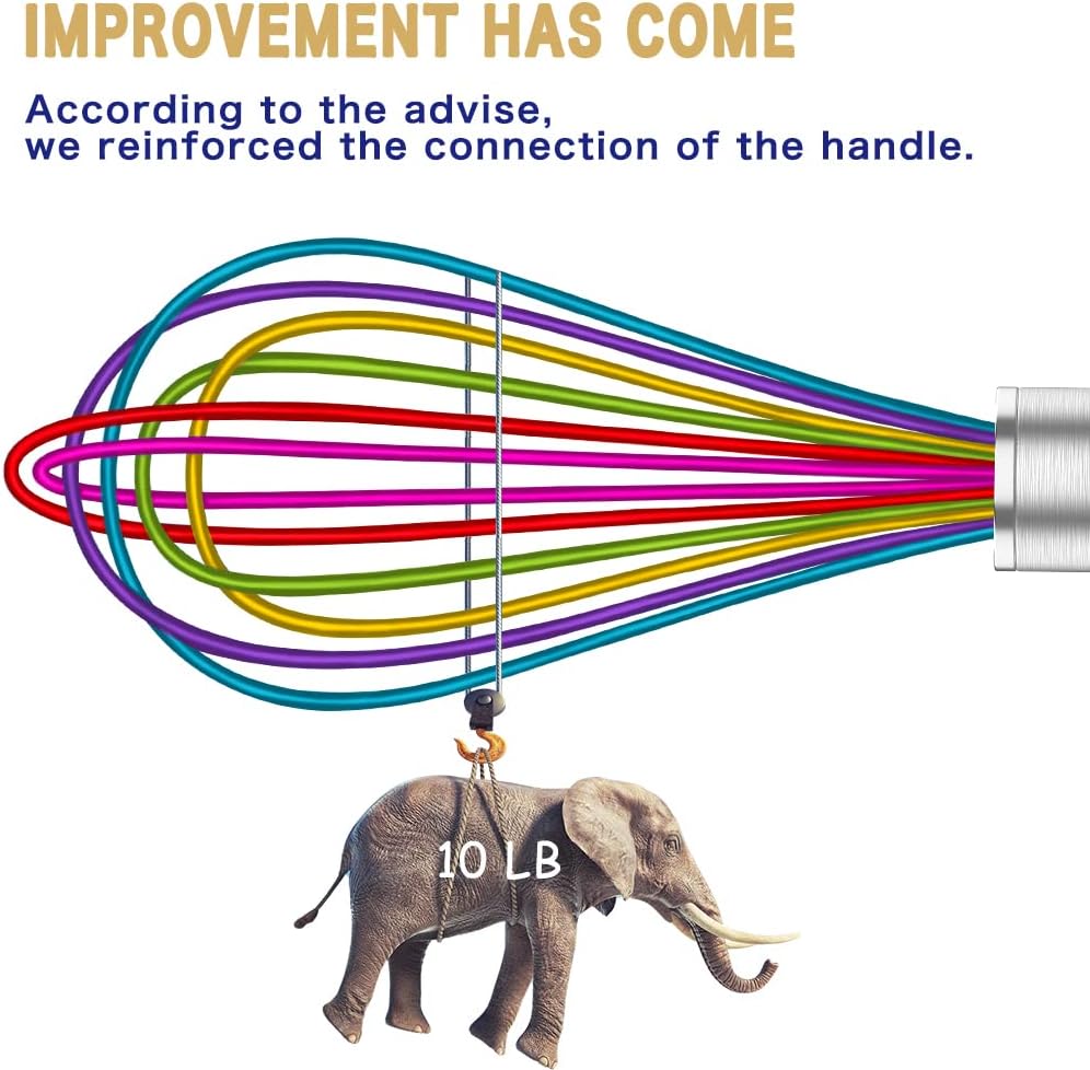 - STRONG AND SAFE: professional rubber whisks are resistant to heat up to 450 degrees Fahrenheit, making them ideal for cooking almost any favorite food. BPA-free silicone design is highly resistant to bacterial growth and stains