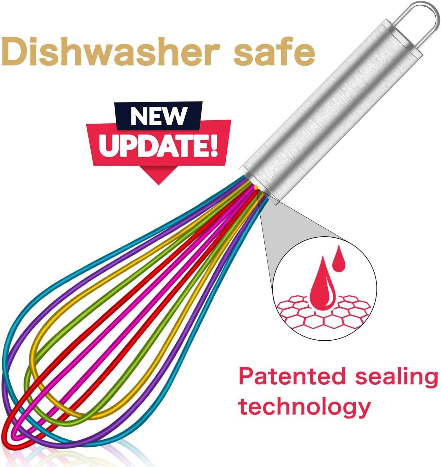 Silicone Whisk,Professional Whisks For Cooking Non Scratch,Stainless Steel & Silicone Wisk,Plastic Rubber Whisk Tool For Nonstick Cookware,Silicon Wisks Set of 3,Rainbow,for Blending,Colorful.