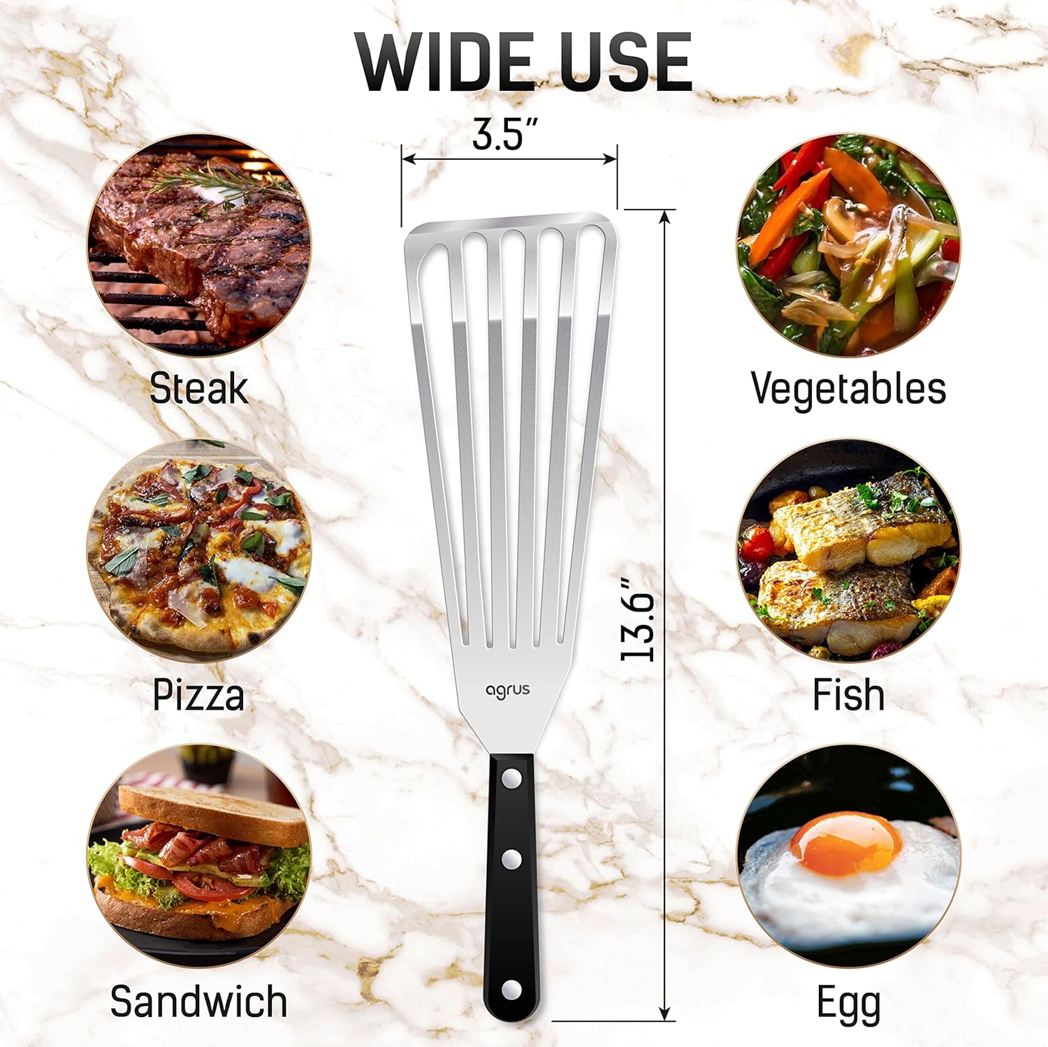 - Multi-Functional β The Fish Spatula is an all-purpose cooking utensil that will help you cook juicy burgers, tender steaks and crispy fish with ease.
