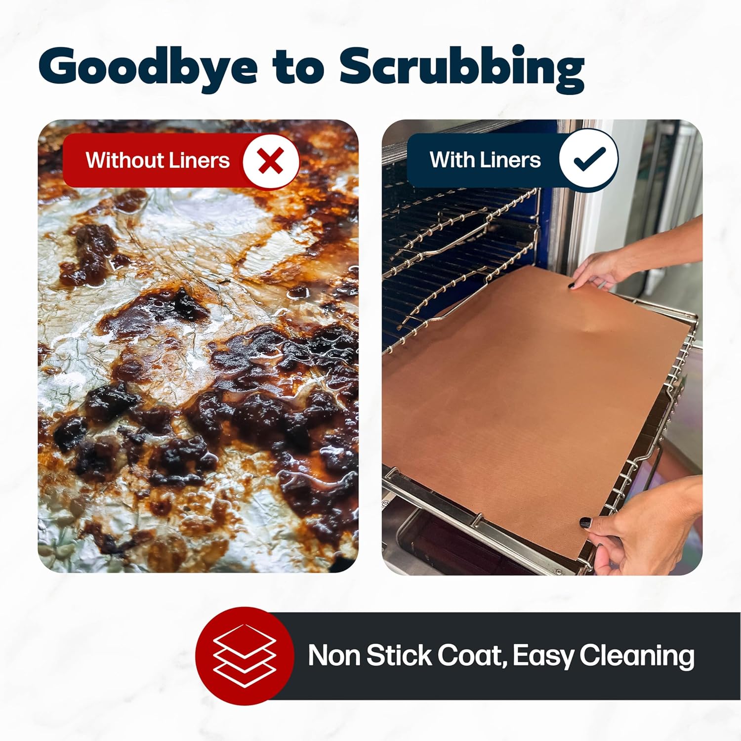 - No scrubbing - keeps your oven clean - Protects against spills, drips, and baked-on messes. A non-stick oven mat for bottom of oven that saves time and effort, keeping your oven spotless after every use.