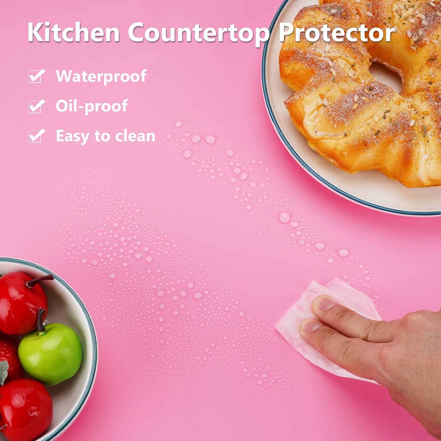 - Countertop Protector : The multipurpose silicone mat can be used as placemats, pot holder, dish mats, tableware, trivet, drains, heat insulated pads to protect the kitchen countertops and other surfaces against spills, scratches, grease, heat, etc.
