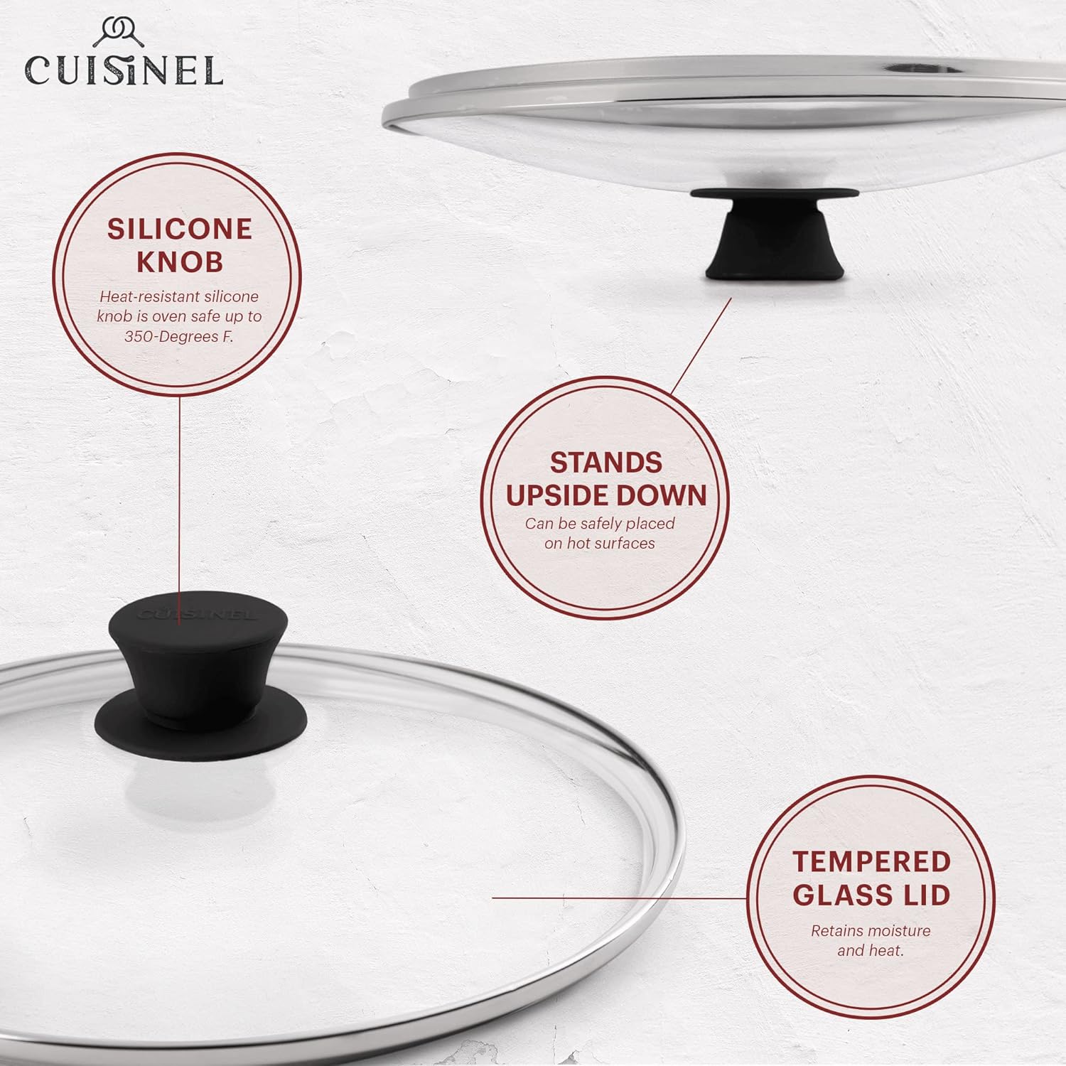- OVEN-SAFE TEMPERED GLASS: Thermal reinforced glass is much safer and more durable than regular glass. Oven-safe up to 350-Degrees Β° F make this sturdy replacement cover an essential part of your cookware accessories collection. Tempered glass can withstand drastic temperature changes and won't shatter under pressure. Transparent glass lids allow you to flaunt luxurious photo-perfect dishes in progress.