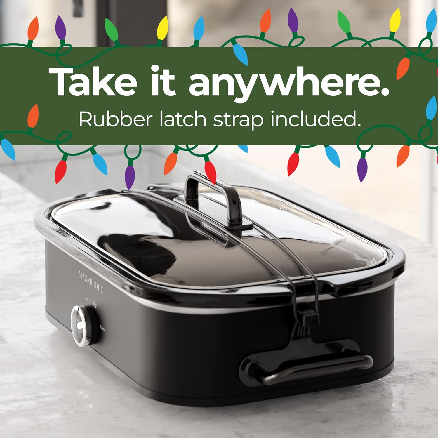 Magnifique 4-Quart Slow Cooker with Casserole Manual Warm Setting - Perfect Kitchen Small Appliance for Family Dinners, Dishwasher Safe Crock, Black