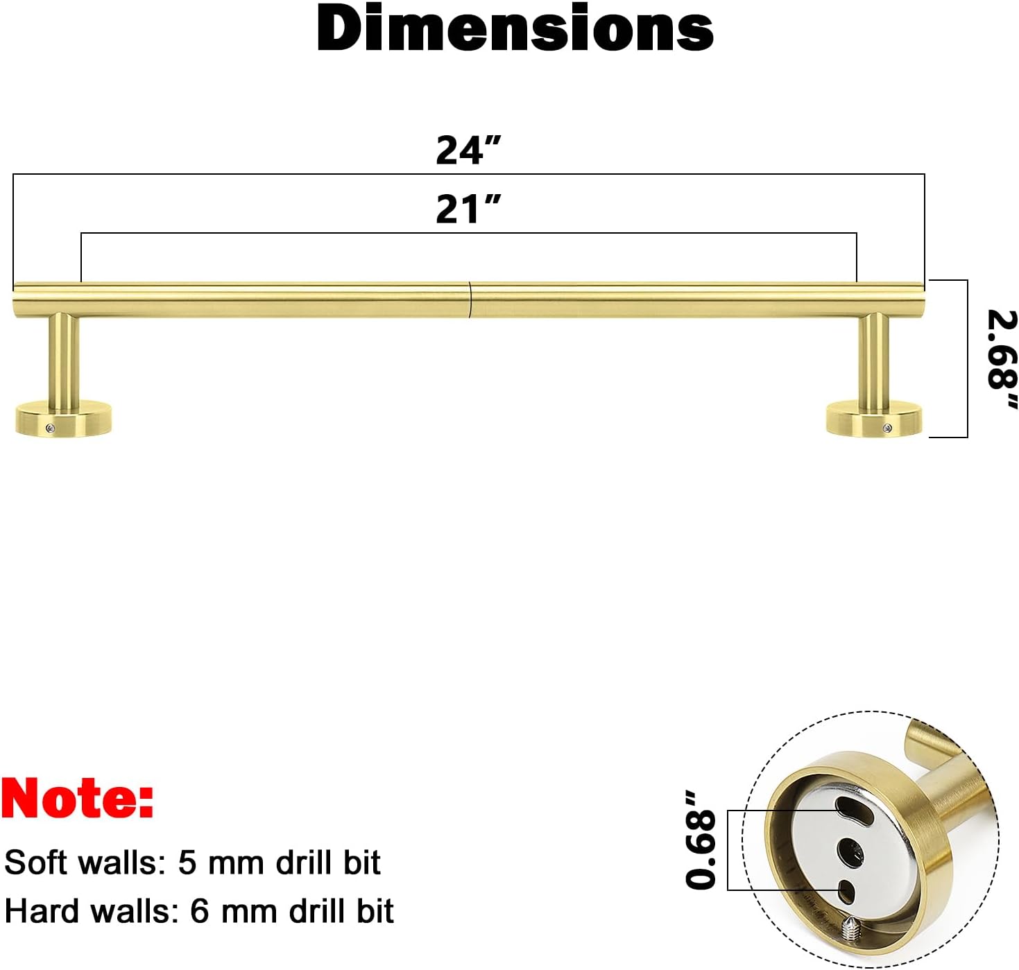 NearMoon Bath Towel Bar, Bath Accessories Thicken Stainless Steel Shower Towel Rack for Bathroom, Towel Holder Wall Mounted (1 Pack, Brushed Gold, 24 Inch)