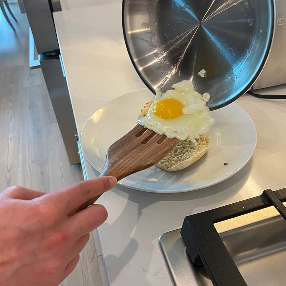 - [Less damage & More heat resistance] The Wooden spatula set bring very less damage to cookware than steel utensils when cooking with Non-Sick Pan, Woks and Stir-Fry Pans, and more safe with high heat than plastic or rubber utensils. This kitchen utensils set are very suitable for cooking in the kitchen.