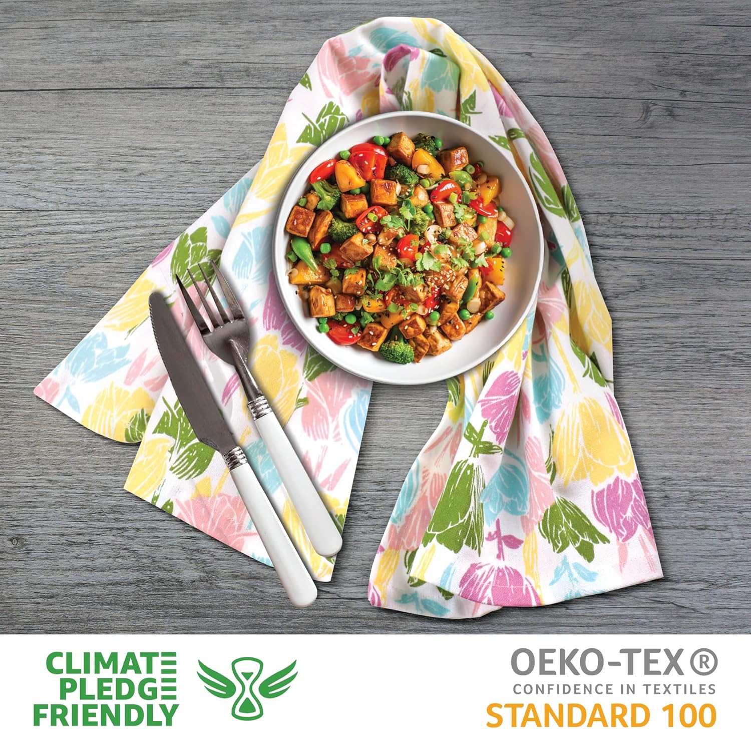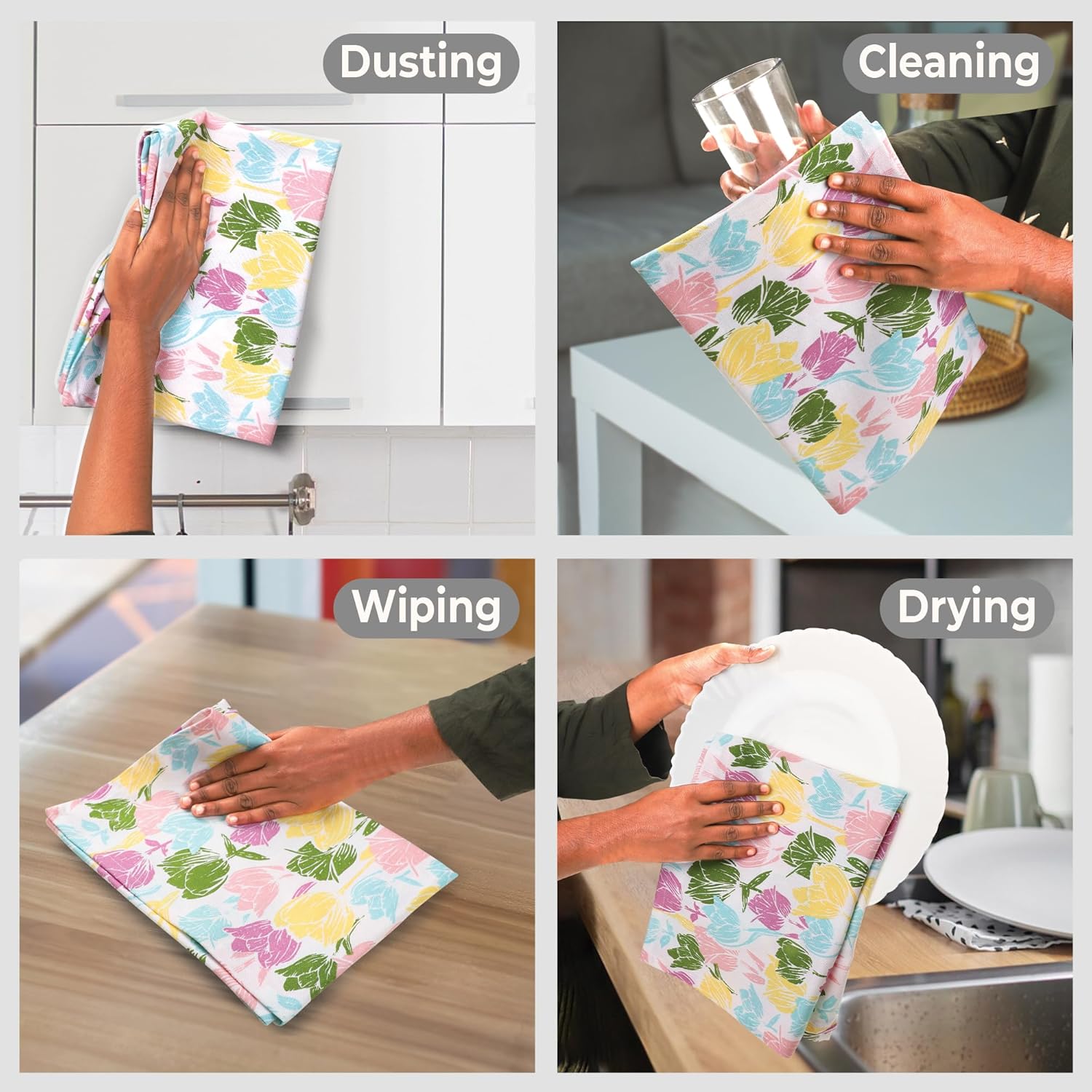Urban Villa Collection Kitchen Towels Tulip Flowers Multi Color Premium Quality,100% Cotton Dish Towels, Mitered Corners,(Size: 20X30 Inch), Highly Absorbent Bar &Tea Towels - (Set of 6)