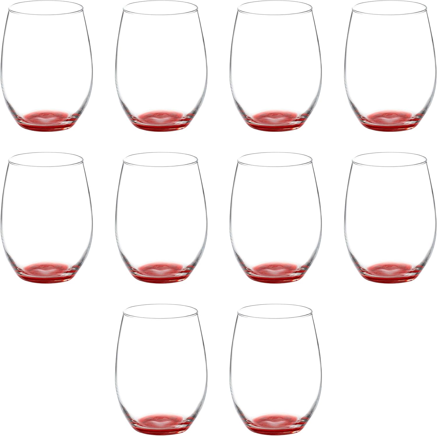 DISCOUNT PROMOS 10 ARC Stemless Wine Glasses Set, 21 oz. - Chardonnay, Cabernet, Merlot, Sauvignon - Red