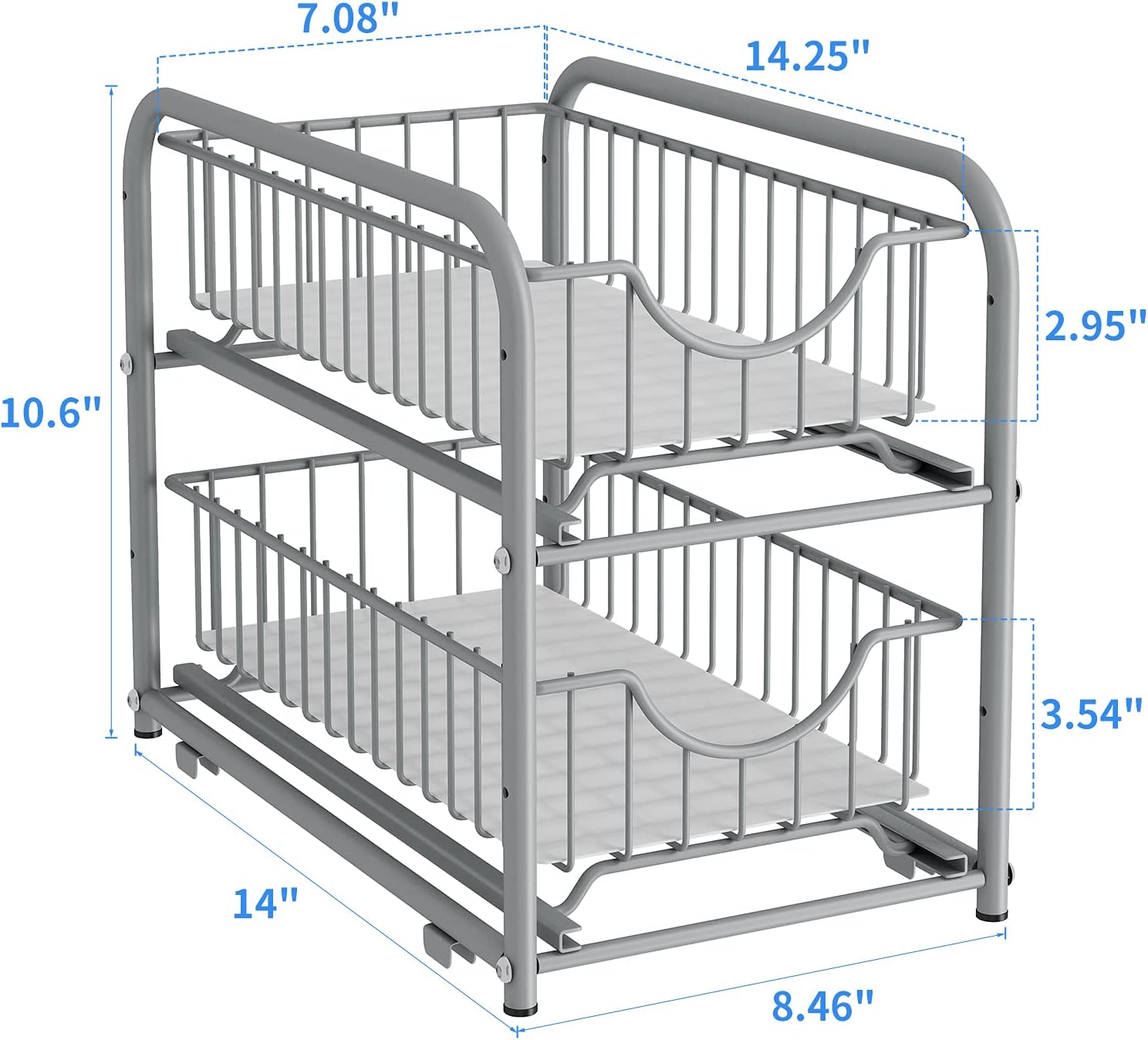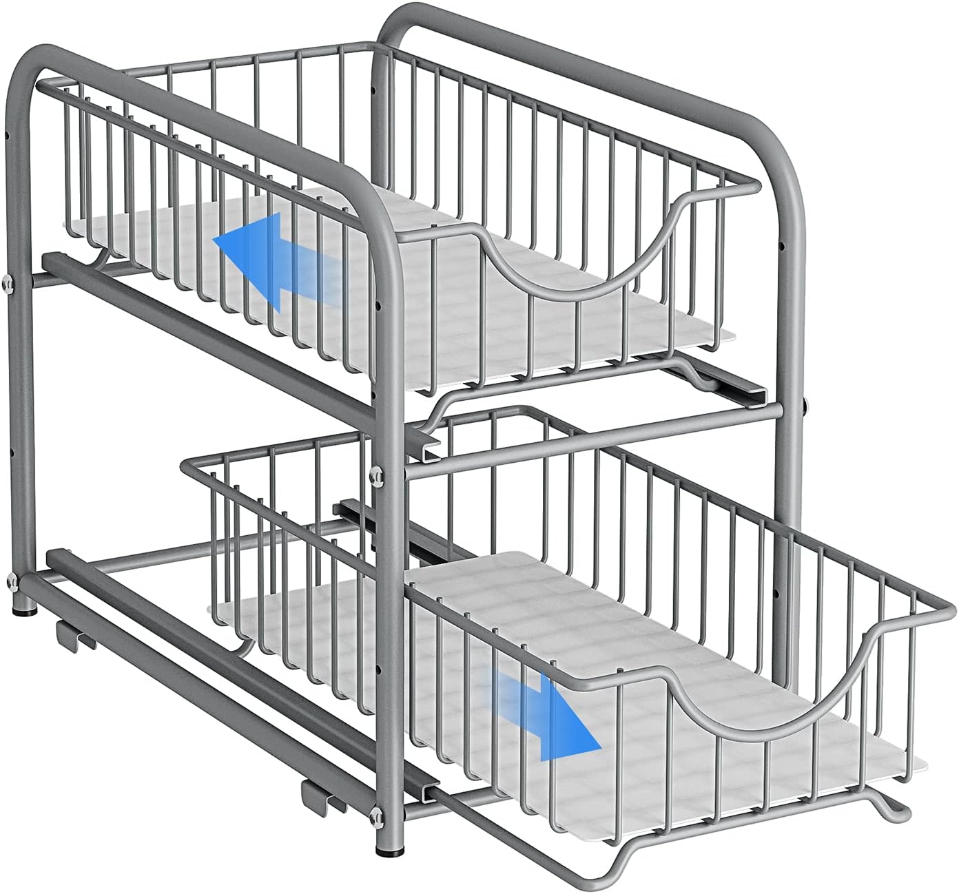 AIYAKA under sink storage 2 Tier Stackable Sliding Basket Organizer Drawer For Kitchen And Bathroom/Cabinet Drawers,silver