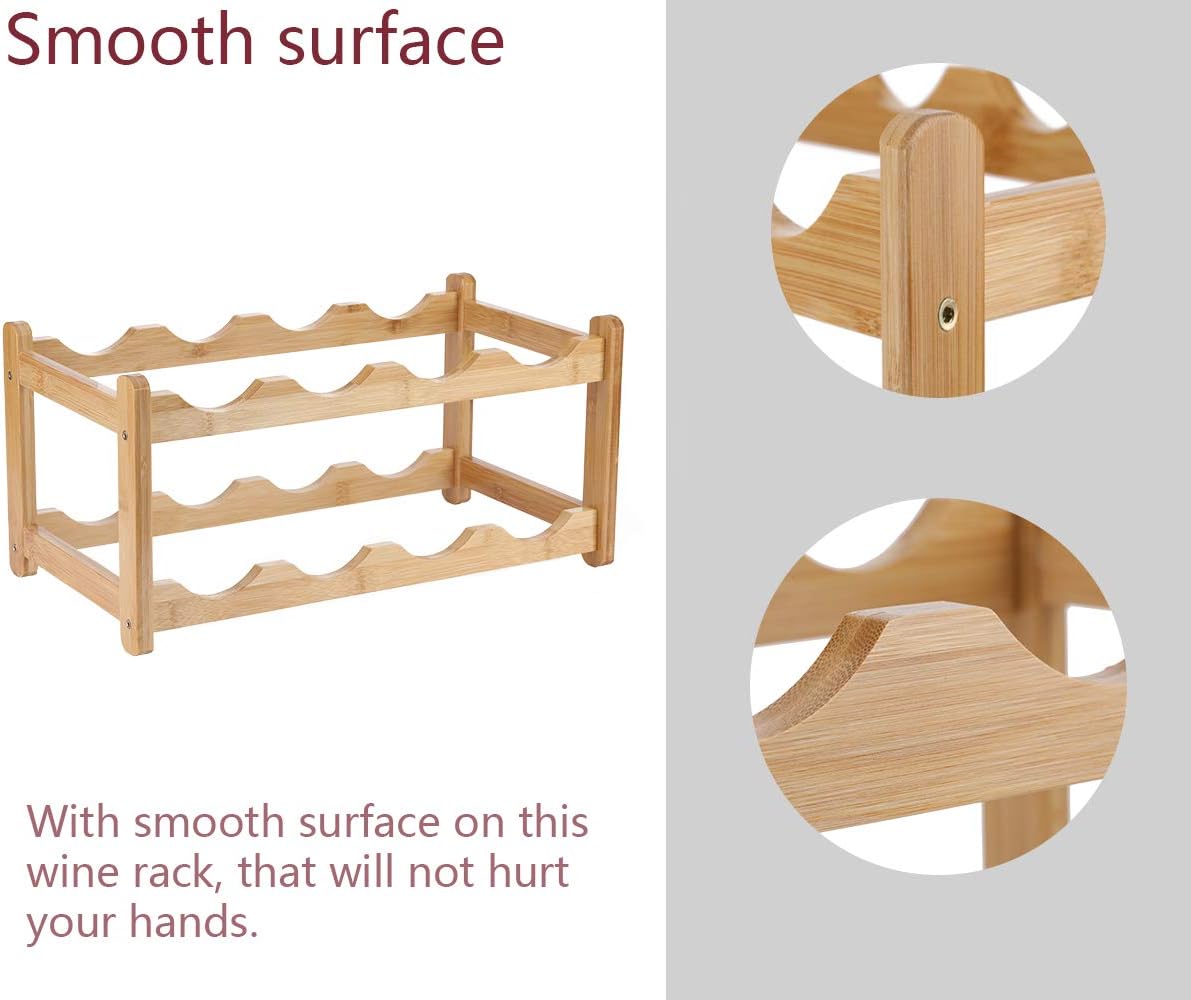 - 【Organic bamboo】:This durable and sturdy natural bamboo wine rack is prepared for eco-friendly lifestyle. Two layers of non-toxic protective paint applied enable it to be better choice no matter for countertop or table top.