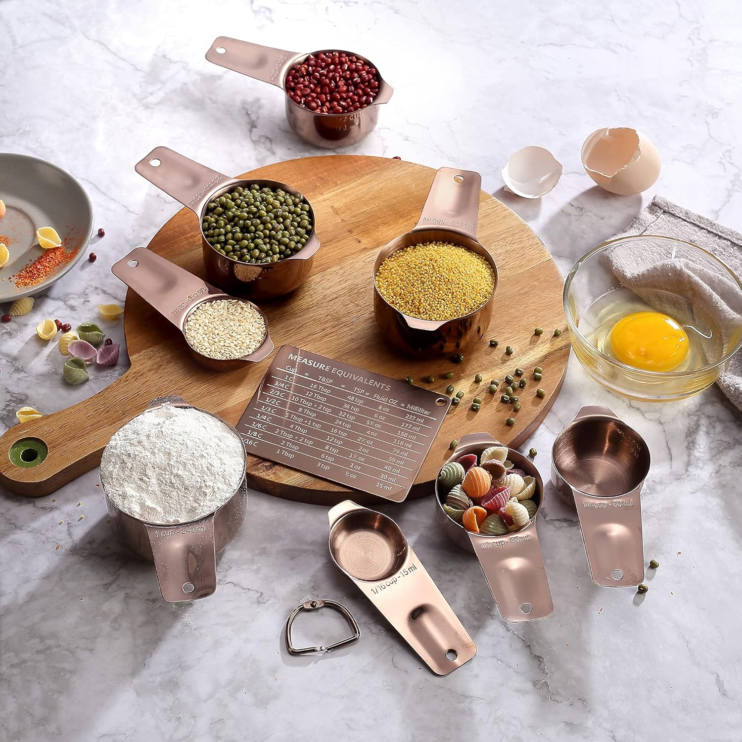 Copper Measuring Cups and Spoons Set (19PCS Set - Antique Copper Plated), 8 Measuring Cups, 9 Measuring Spoons, 1 Leveler and 1 Magnetic Measurement Chart, Stackable for Easy Storage with Gift Box