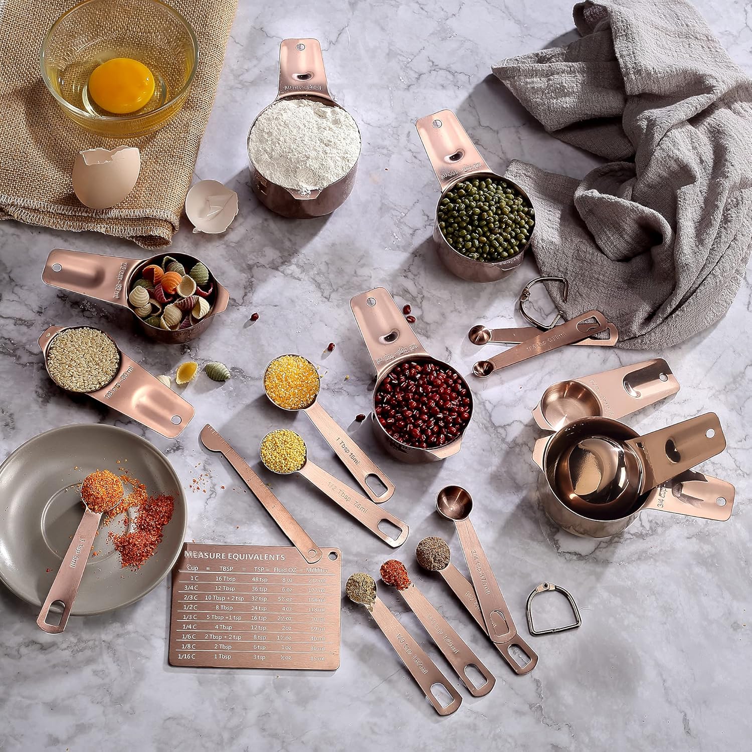 - Premium Quality That Lasts - These Measuring Cups and Spoons Set are Made To Stand The Test Of Time. Rust-Resistant, No Toxic Elements, Which is 100% Safe To Use For Both Dry and Wet Ingredients. Top Of The Range Stainless Steel Provide Greater Durability Than Other Measuring Set.