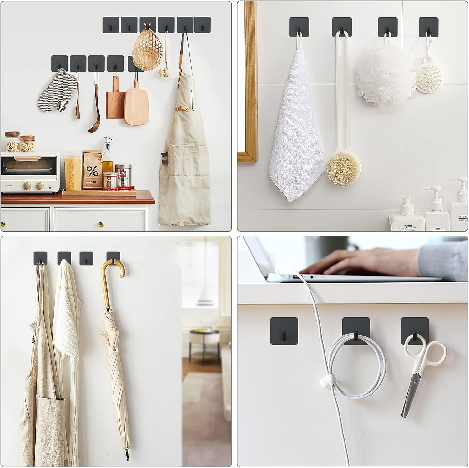- Well Made: Self adhesive hooks are using 304 stainless steel material, smooth edges, sturdy and durable; surface electroplating treatment have excellent waterproof, antirust and scratch resistance; matte black finish, minimal and sleek looking goes well in any decor