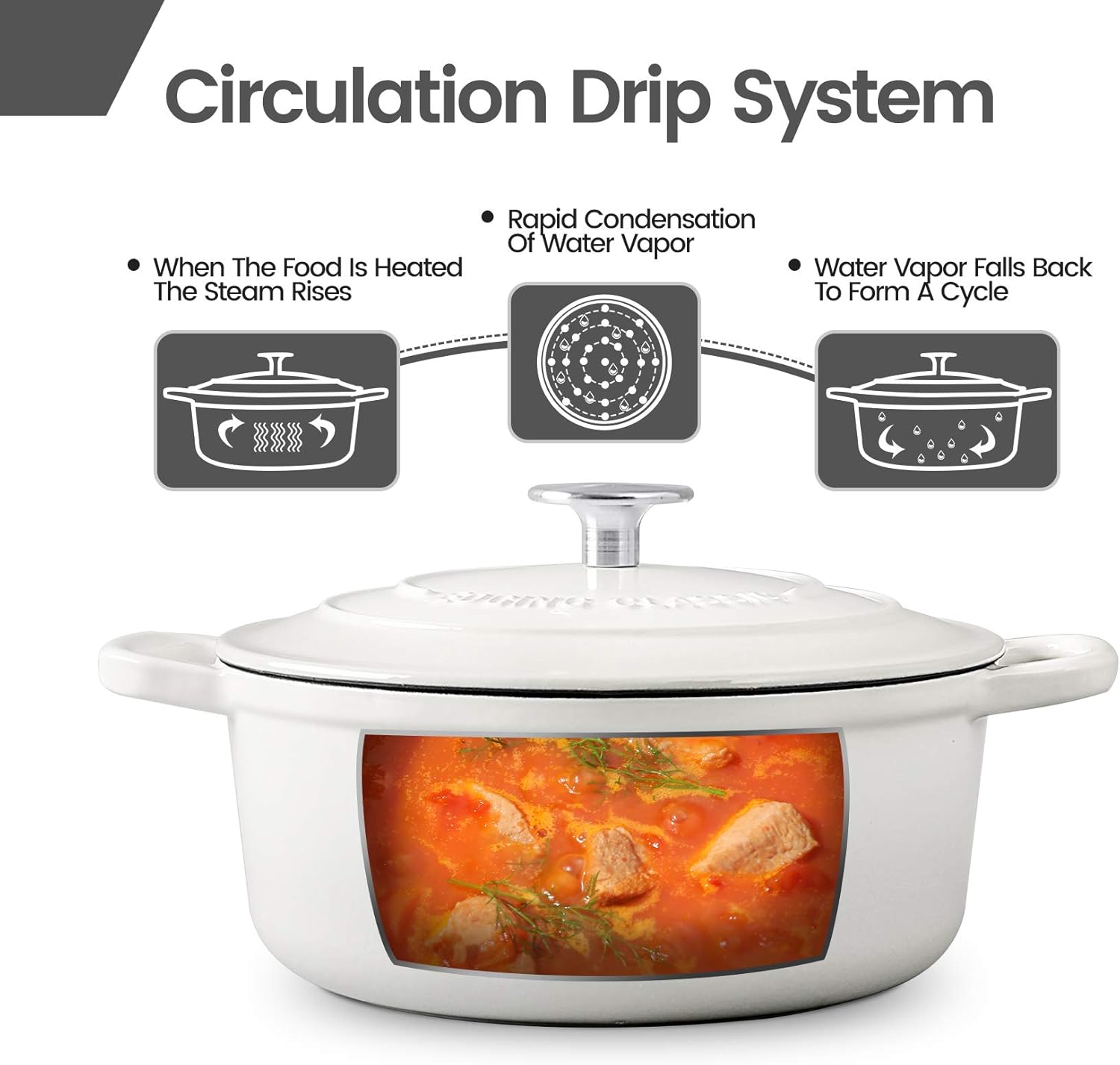 Dutch Ovens Enameled Cast Iron Covered 5.5 Quart Dutch Oven with Dual Handle for Bread Baking, White
