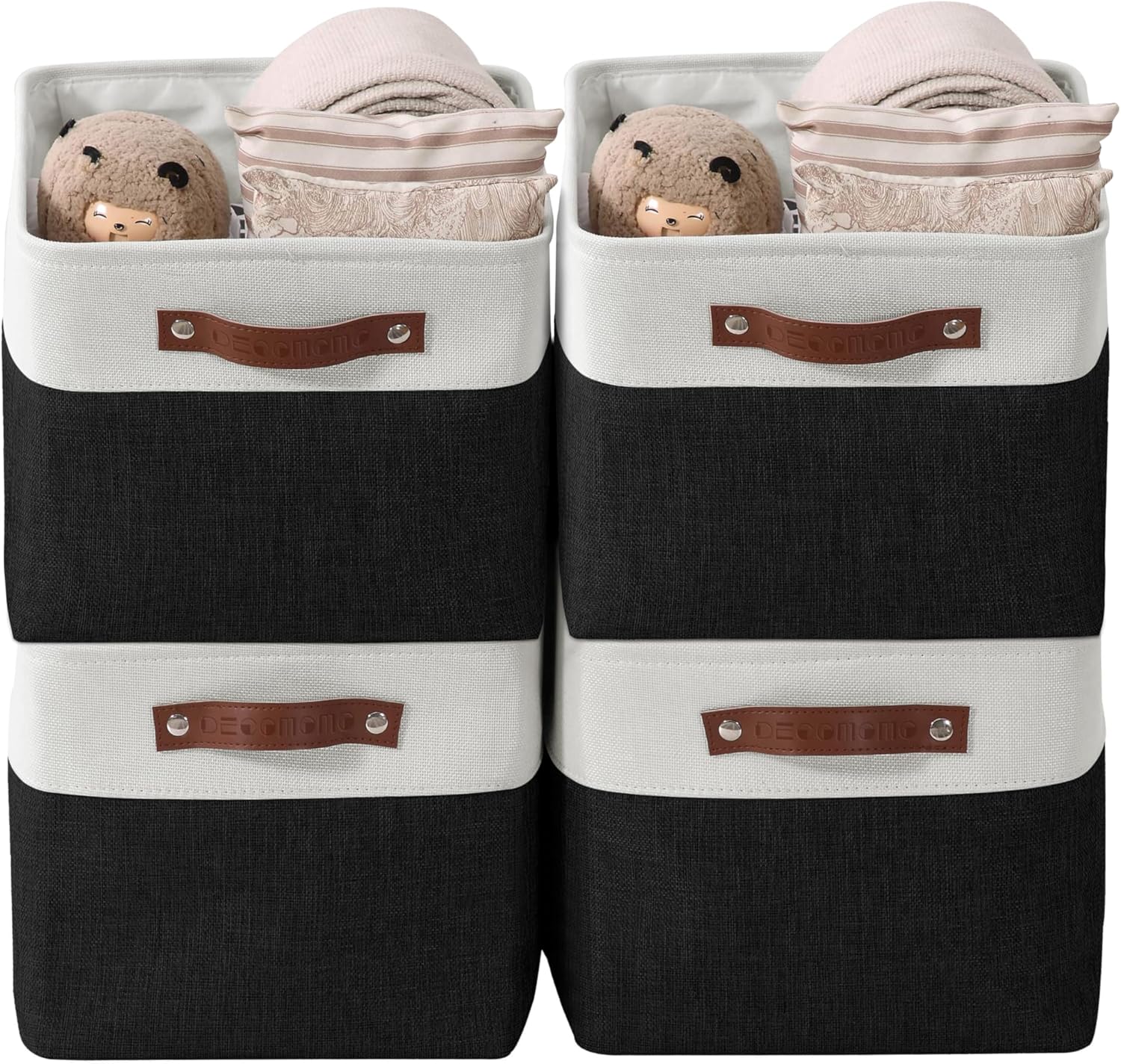 DECOMOMO Storage Bins Fabric Storage Baskets for Shelves, Linen Closet Organization Toys Nursery (Black and White, Large - 4 Pack)