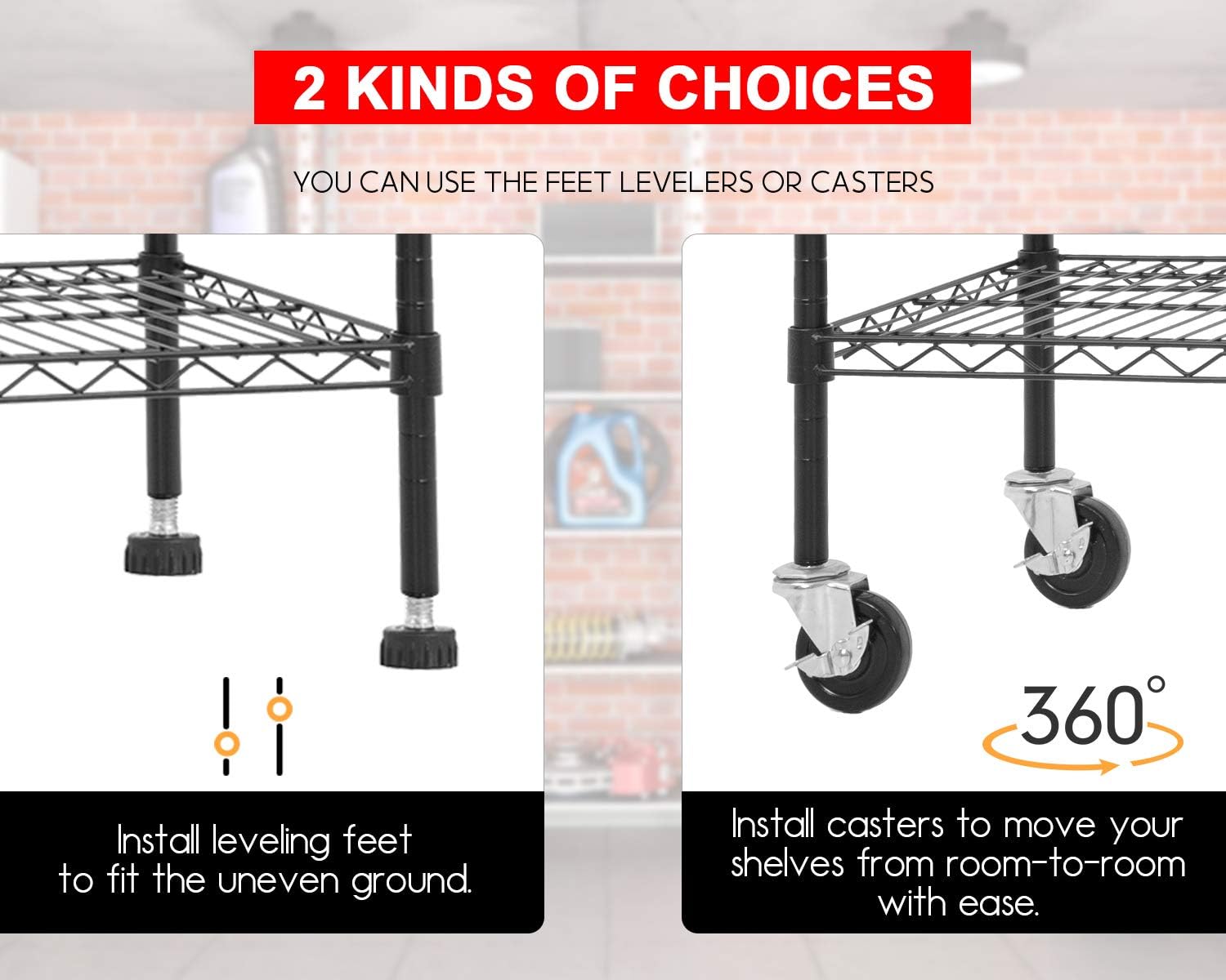- ✔【Adjustable Height】 Enjoy a completely customizable metal shelving unit. The build allows for height adjustments - giving you the freedom to adjust accordingly to your needs. Comes with easy adjustable clips to secure and stabilize each shelf. The multi-purpose shelf rack is perfect for garage shelving, kitchen storage, pantry shelving, and more.