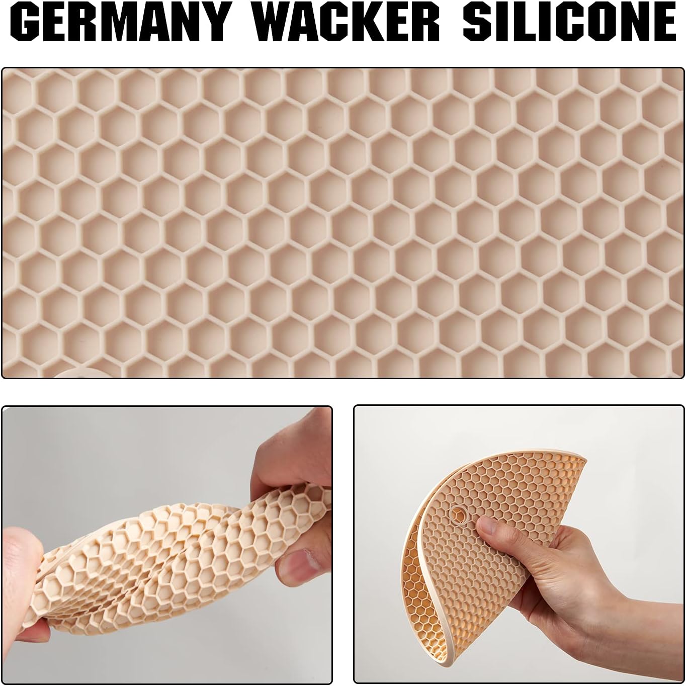 - HONEYCOMB DESIGN: Our innovative honeycomb pattern silicone trivets create a multipurpose surface that protects countertops from heat or water damage.