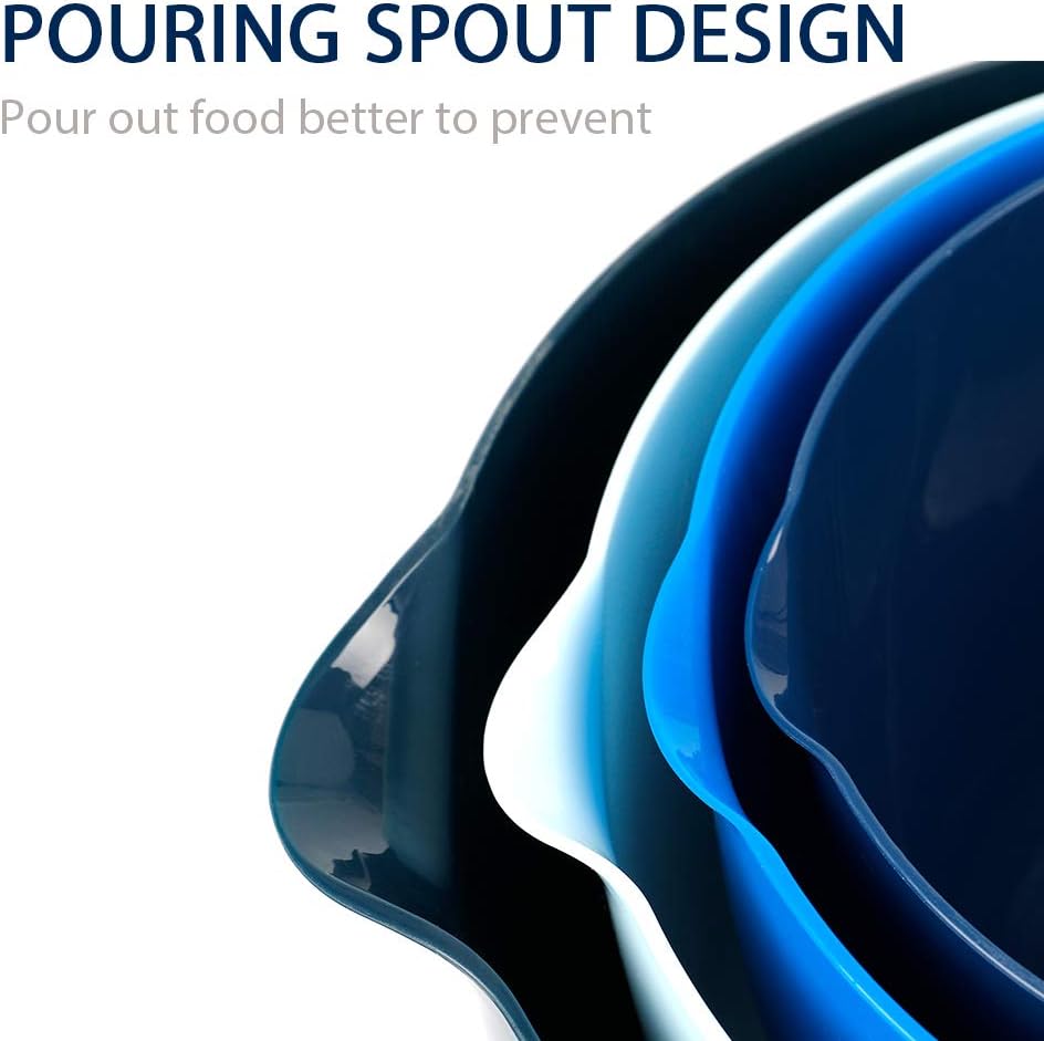 BoxedHome Nesting Plastic Mixing Bowl Set With Pour Spout, Microwave and Dishwasher Safe, BPA free Non-Slip Base, Set of 4 Size 1.7, 2.5, 3.5 and 4.5qt, Great for Prepping, Baking, Cooking (Dark Blue)