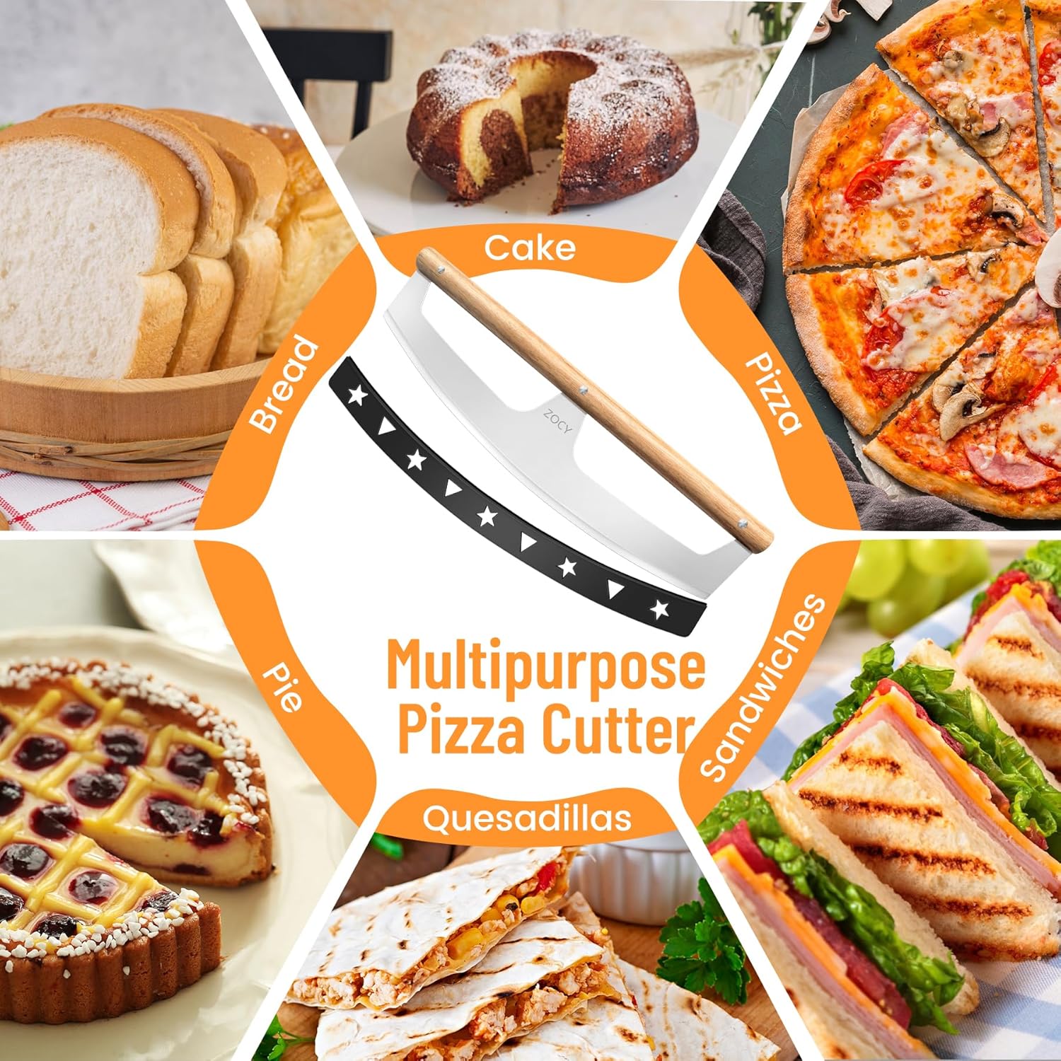 - [PREMIUM QUALITY] - Made of food grade 430 stainless steel blade and PP cover, the Pizza Rocker Knife is incredibly sharp, the whole steel plate is integrated to make no welding, no falling off, not easy to deform and rust.