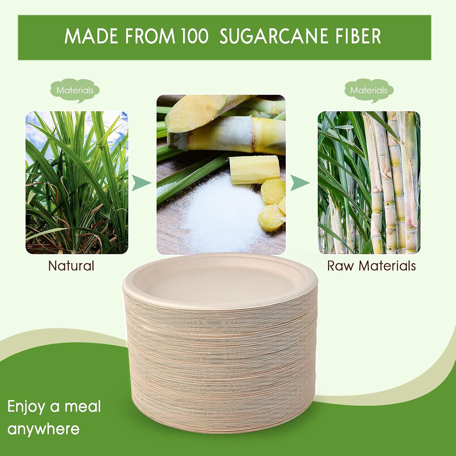 - Good For Environment: Made from sustainably sourced sugarcane fibers, these paper plates are 100% biodegradable and suitable for composting for easy disposal,making these plates good for the environment