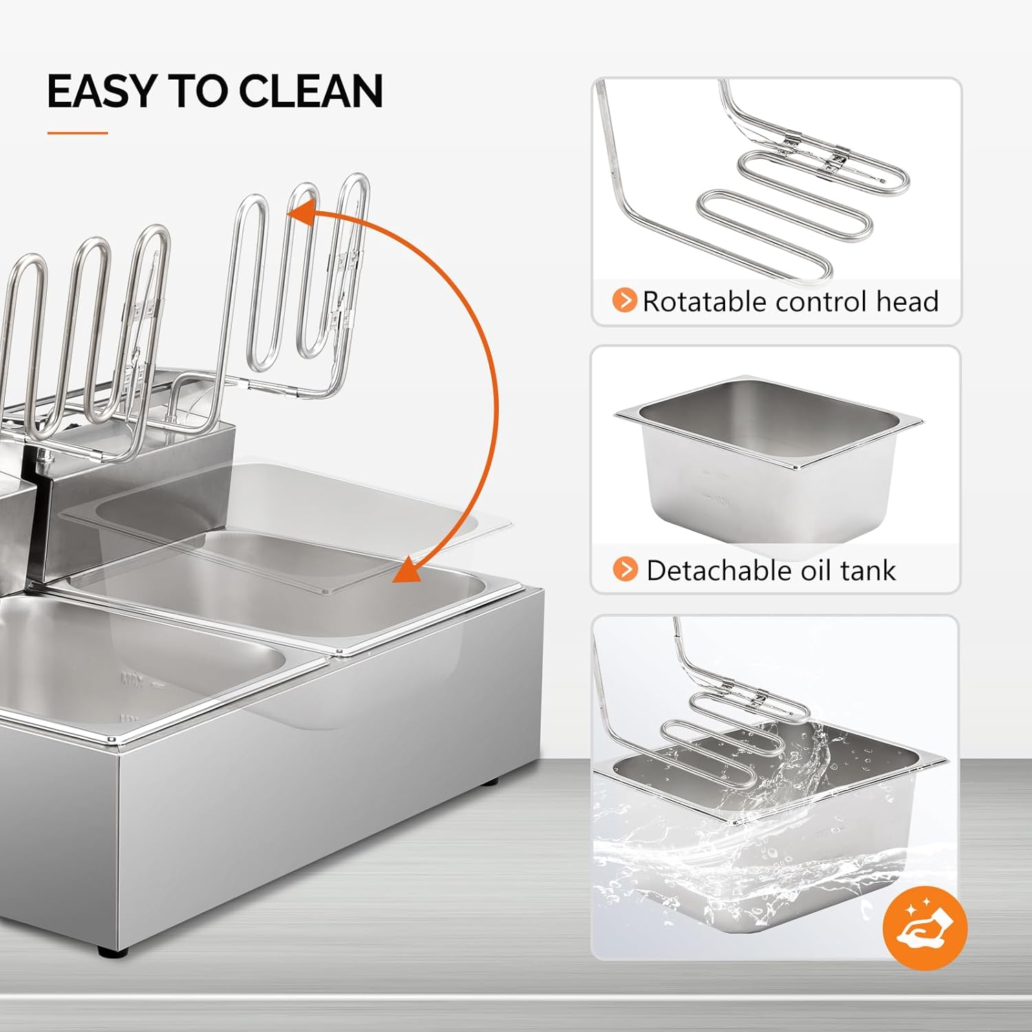 - DURABLE & EASY CLEANING: The countertop deep fryer, made of heavy duty stainless steel, is solid in construction. Thickened tank for durable use, can be detached for easy cleaning. Besides, the oil tank is designed with handles, which makes it more convenient for you to take out the oil tank.