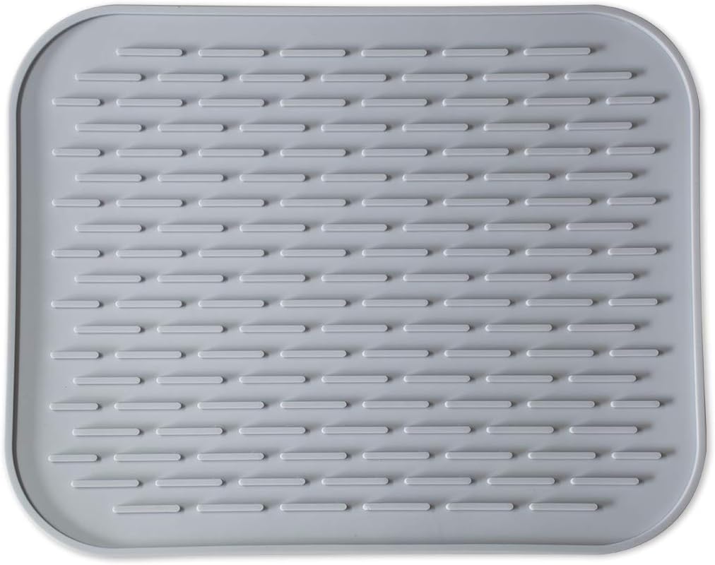 Silicone Dish Drying Mat for Multiple Usage,Easy clean,Eco-friendly,Super Sturdy Silicone Dish Drying Mat and Trivet, Dishwasher Safe, Heat Resistant (Gray, S 11.6×9.3inch)