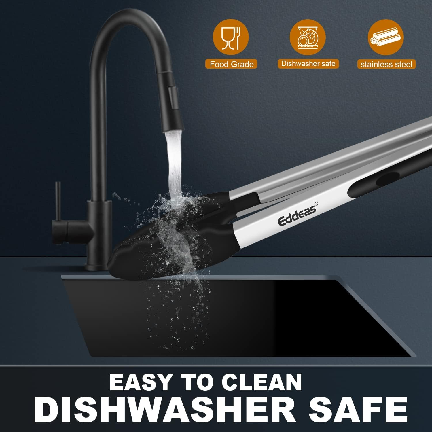 - FOOD GRADE MATERIALS - Eddeas tongs for cooking featuring a food grade silicone head, the tongs are gentle on your nonstick cookware so you can worry less about scratching and wear and tear, silicone is heat resistant up to 484 degrees Fahrenheit, making it a great option for nearly any cooking task.