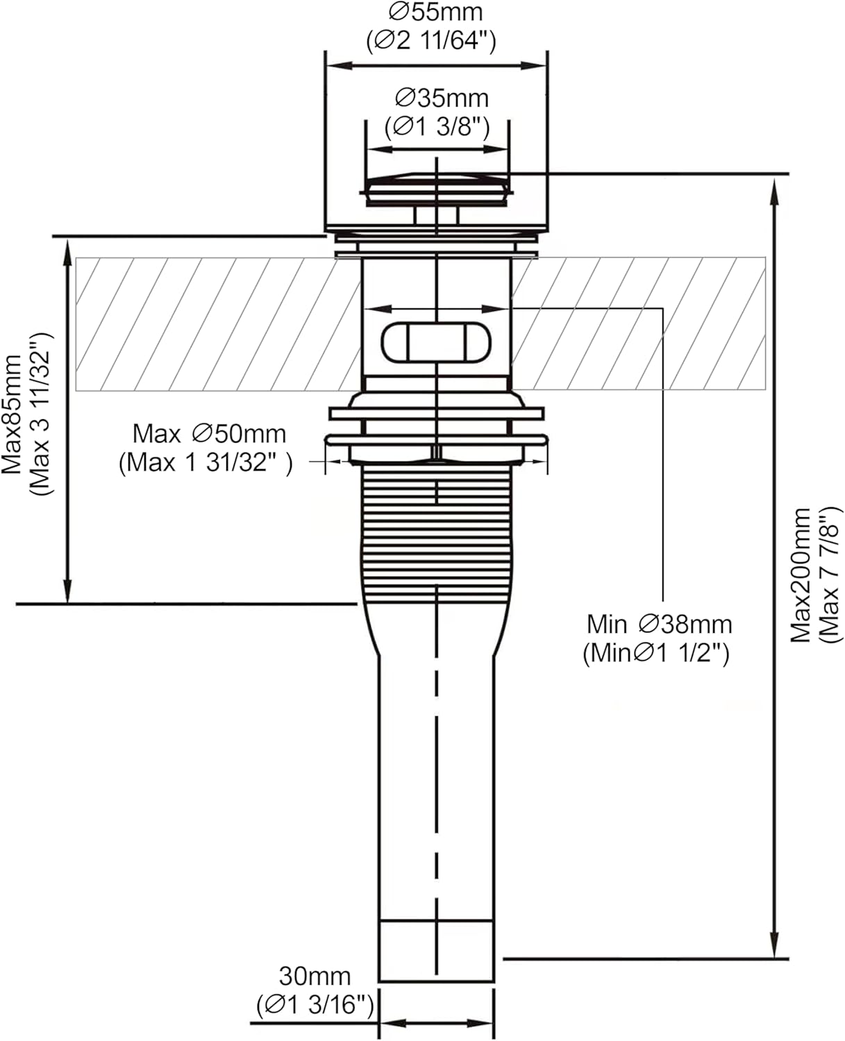 - SIZE: It fits standard US bathroom sink with 1-5/8 inch to 1-3/4 inch drain hole
