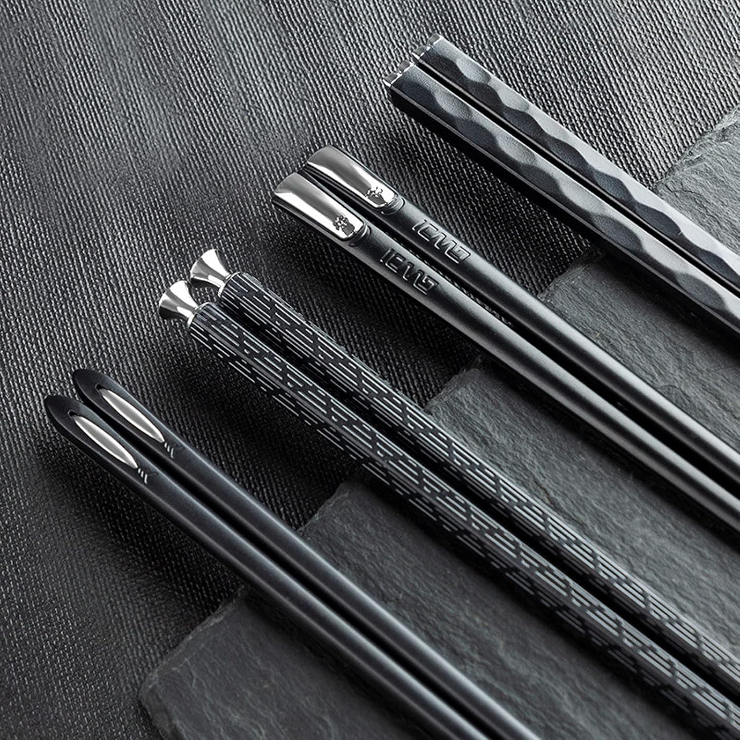 5 Pairs Food Grade PET+Glass Fiber Alloy Polymer Laser Engraving Japanese Metal Chopsticks, Squared Edge Non-Slip Chop Sticks Pack Reusable Gift with Case