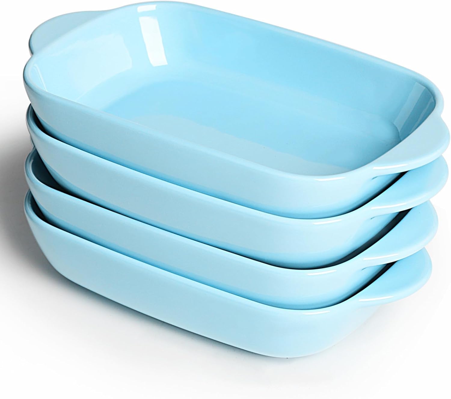 LEETOYI Ceramic Small Baking Dish 7.5-Inch Set of 4, Rectangular Bakeware with Double Handle, Baking Pans for Cooking and Cake Dinner (Turquoise)