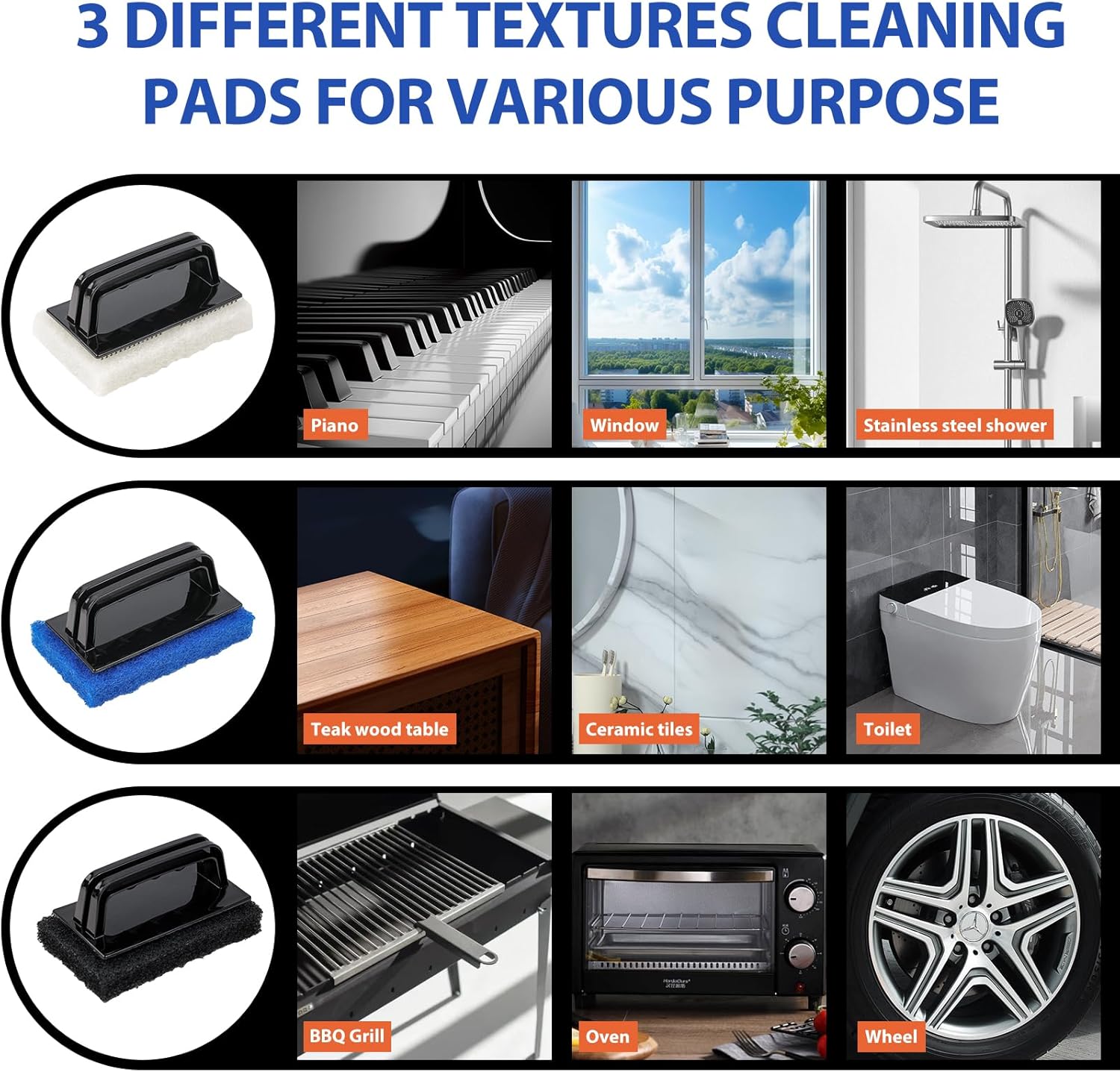 - COMPATIBLE TO EVERY CLEANING TASKS Simple to switch between pads for different tasks. Compatible with various scouring pads, enhancing the kit's flexibility and convenience.