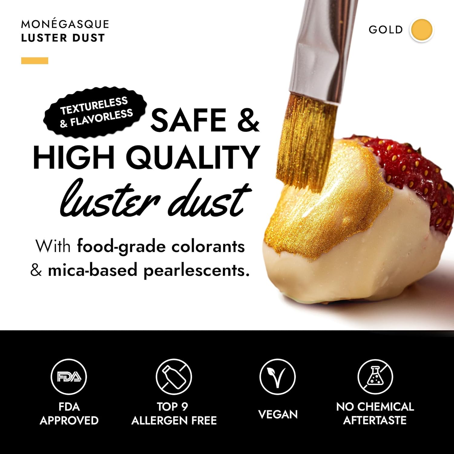 - EASY TO USE: Our gold luster dust is incredibly versatile. Apply with a wet brush, airbrush, or dry brush, and even mix into beverages. Achieve professional-looking results effortlessly at home, whether decorating cakes or adding shimmer to cocktails.